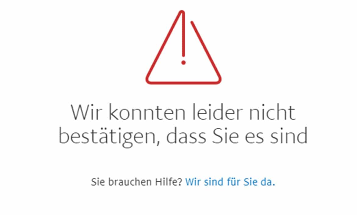 Leider habe ich den Fehler das meine indentität nicht bestätigt werden konnte.