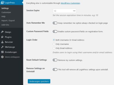 Änderungen am Design sind in den Einstellungen jedoch leider nicht möglich. Wollt ihr die Login-Funktion eurem Design anpassen, wählt ihr am besten die Plugins Custom Design oder Theme my Login. Diese übernehmen das Design eures ausgewählten WordPress-Themes eurer Website. Es stehen euch natürlich noch weitere Plugins zur Verfügung. Die bereits genannten sind alle kostenlos.