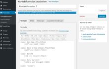 Ihr installiert das Plugin wie gewohnt über das Dashboard unter “Plugins – Plugins installieren“. Nach dem Aktivieren steht nun links im Menü „Formulare“. Anschließend könnt ihr das Kontaktformular auswählen, und es steht euch direkt ein Standardformular zur Verfügung. Um das Formular einer Seite hinzuzufügen, müsst ihr den Shortcode inklusive Klammern kopieren und ihn anschließend in der Seite oder dem Blog einfügen.