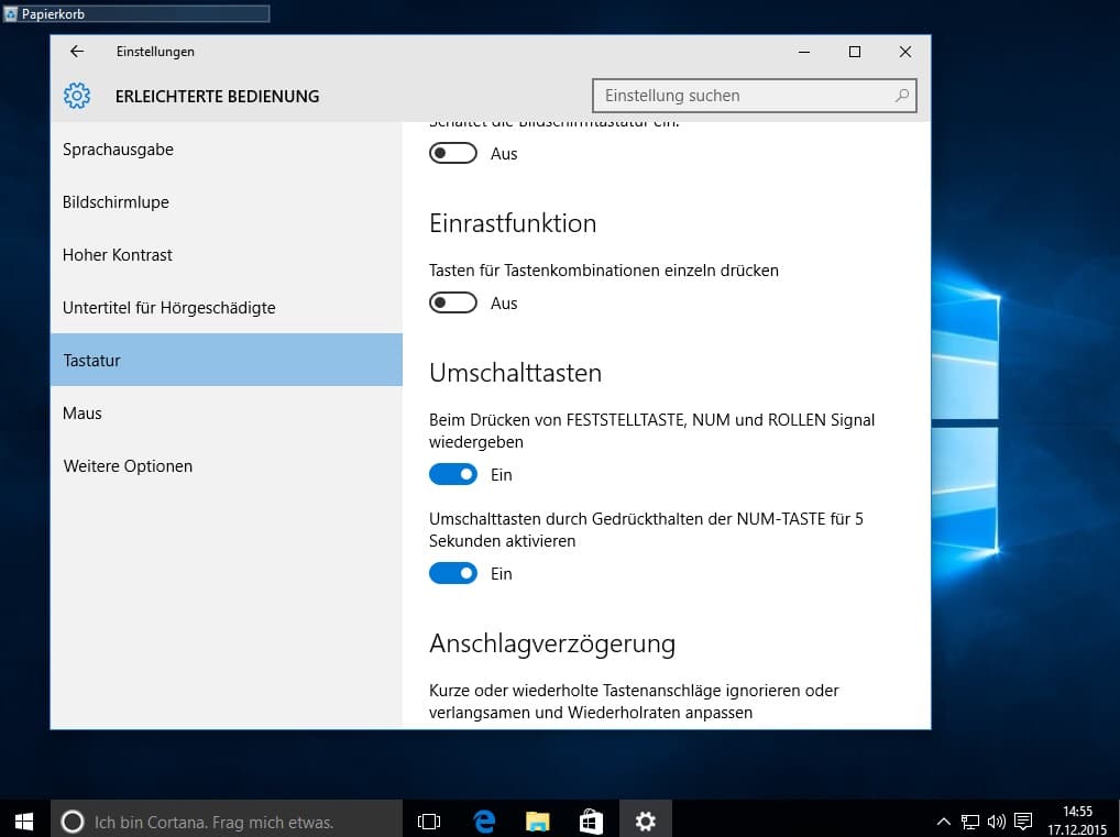 Natürlich kann man mit einem Tool die Taste deaktivieren oder umbelegen, wenn man diese gar nicht benutzt. Doch wer sich nicht auf die Software verlassen möchte, der kann bei Windows 10 eine Einstellung vornehmen, die euch einen Signalton ausgibt sobald die Feststell-, Num Lock- oder Rollen-Taste gedrückt wird.