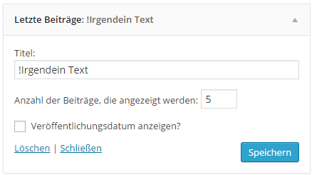 Hier ein Beispiel um den Titel aus dem Widget „Letzte Beiträge“ zu entfernen: