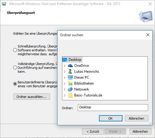 - optional: Habt ihr die „Benutzerdefinierte Überprüfung“ gewählt, klickt ihr auf „Ordner auswählen„