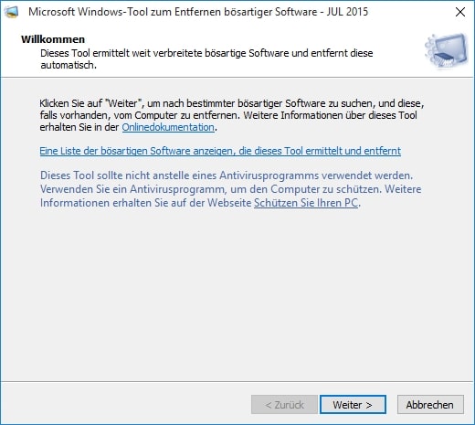 Microsoft aktualisiert „MSRT“ (Malicious Software Removal Tool) regelmäßig über die regulären Windows Updates. Es kann nur benutzt werden um im Hintergrund laufende, bösartige Software zu entfernen. Ihr solltet es also nicht mit einem Anti-Viren-Programm verwechseln!