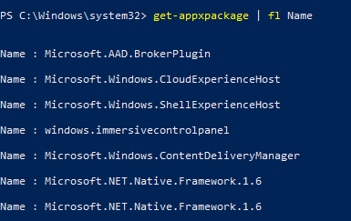 Um den Vorgang zu Überprüfen, gebt einfach erneut get-appxpackage | fl Name in die Powershell ein.