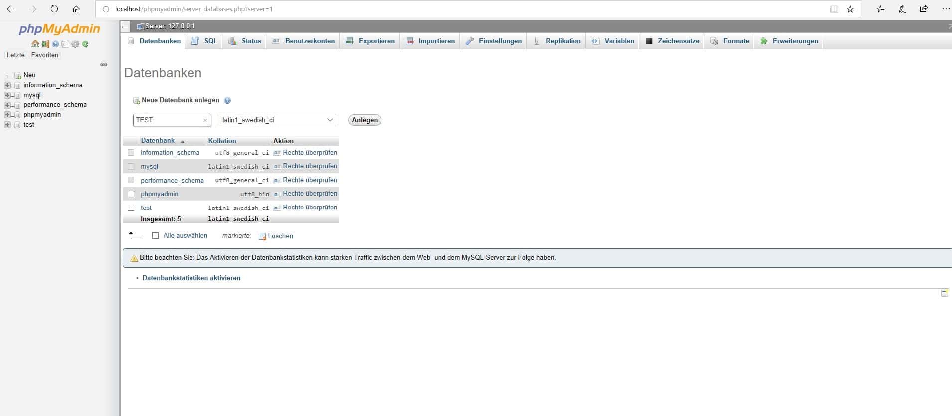 MySQL-Datenbank mit phpMyAdmin anlegen