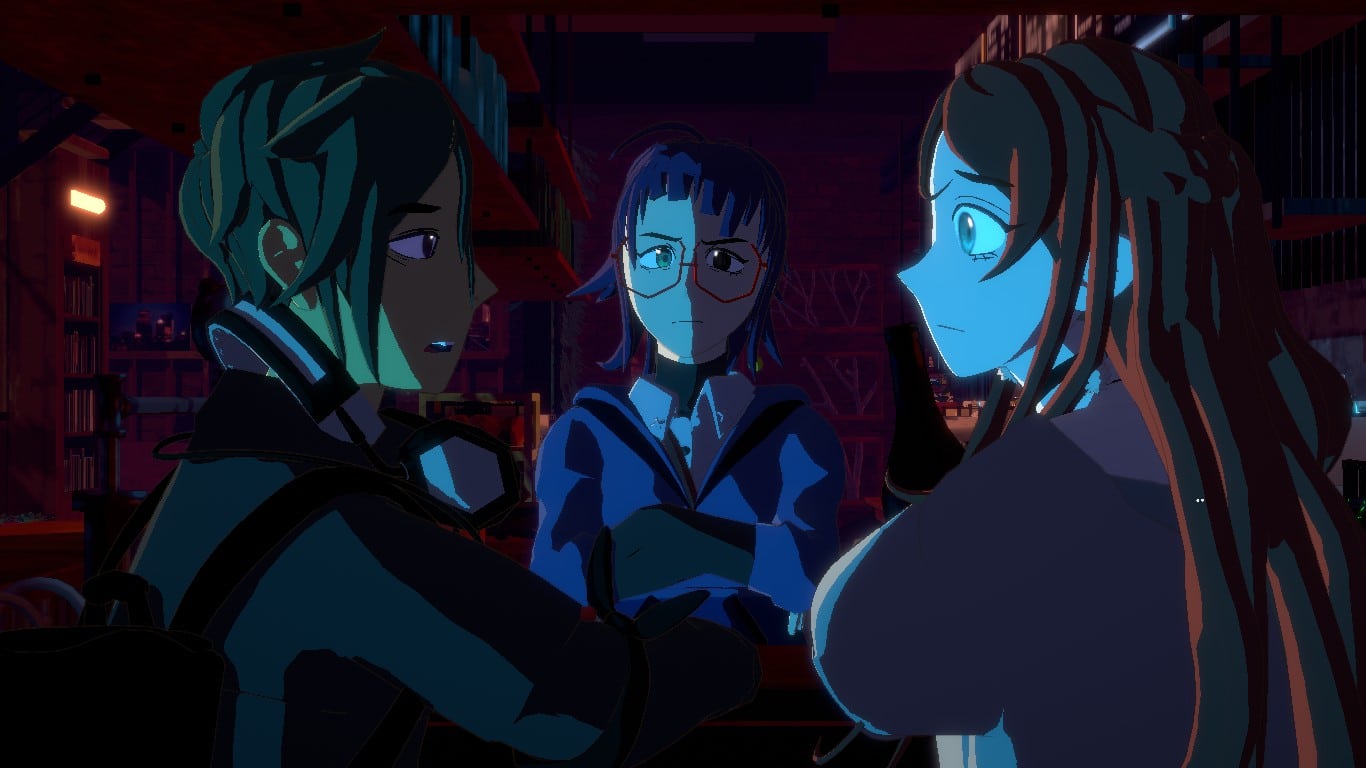 Das zweite Element, dass Necrobarista für das Erzählen seiner Geschichte nutzt, ist die Optik. Anstelle der klassischen 2D-Artworks, die man normalerweise von Visual Novels gewohnt ist, setzt diese auf cinematische 3D-Szenen. Diese sind teilweise animiert, aber meistens eher Standbilder mit Kamerafahrt. Dadurch gibt es eine zusätzlich Dynamik und das Spiel kann auf langatmige Beschreibungen von Personen und Aktionen verzichten. Hierbei ist der Artstyle auch nicht zu unterschätzen – er ist ausgesprochen schön anzusehen und gibt dem Spiel eine ganz eigene Note.