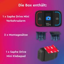 Es warnt vor stationären und mobilen Blitzern sowie vor Unfällen und anderen Gefahrenstellen. Die Daten stammen aus einer Community von über einer Million Nutzern sowie von Partnern wie Blitzer.de. Der Saphe Drive Pro startet automatisch beim Fahrtbeginn und verbindet sich über Bluetooth mit der Saphe Link-App auf dem Smartphone.