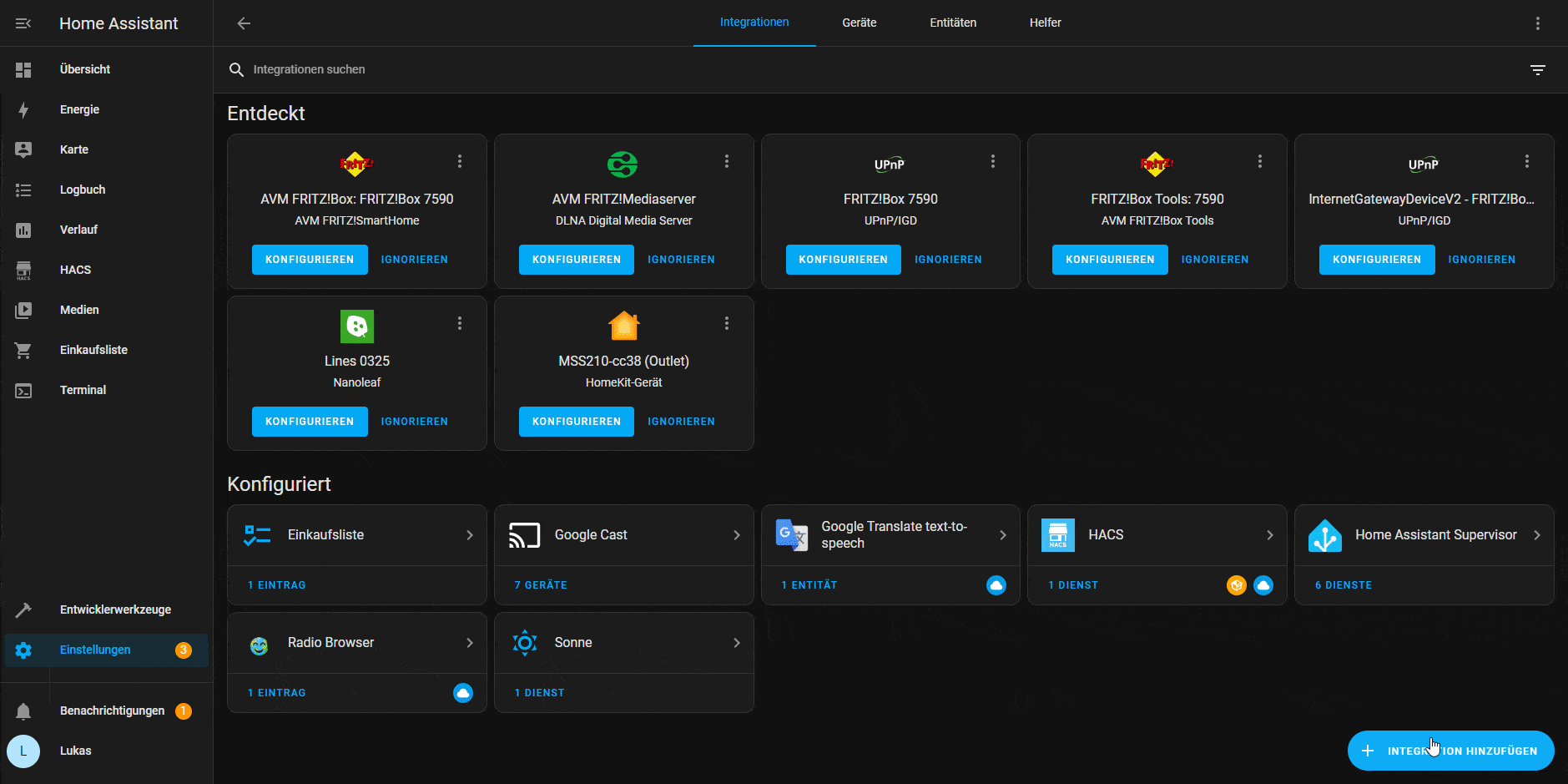 Um die Steckdosen jetzt in Home Assistant zu integrieren, müssen wir über HACS die Integration Local Tuya installieren. Nach einem Neustart kann die Integration wie gewohnt über die Systemeinstellungen von Home Assistant hinzugefügt werden.