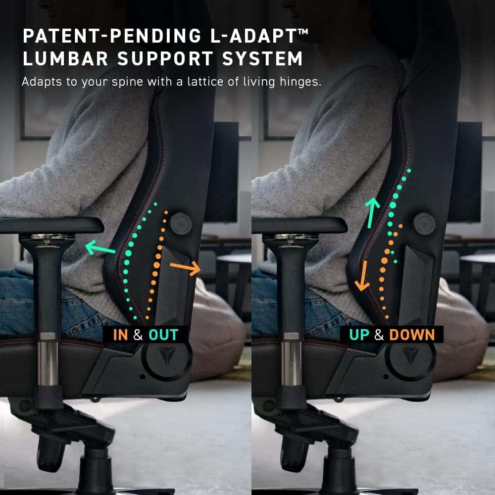 Natürlich integriert auch dieser edle Gaming-Stuhl die 4-Wege-L-ADAPT Lordosenstütze, die mit einer Einstellung nach vorne und hinten sowie oben und unten die Lendenwirbelsäule entlastet.