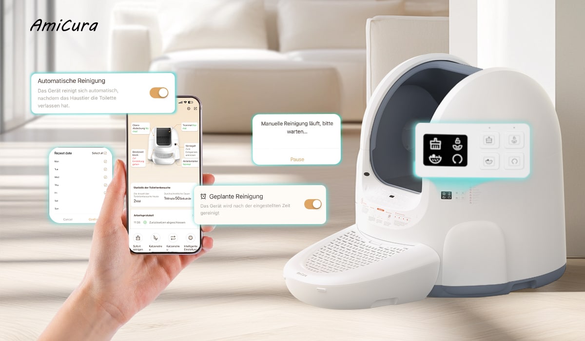 Das alles macht die intelligente Katzentoilette Amicura Cura 2 zu einem absolut praktischen und vielseitigen Helferlein, dass die lästige Arbeit der manuellen Reinigung für euch übernimmt und den Katzen den bestmöglichen Komfort liefert.