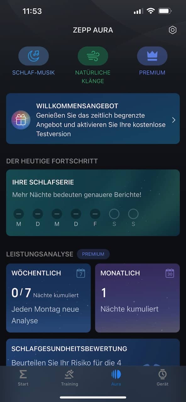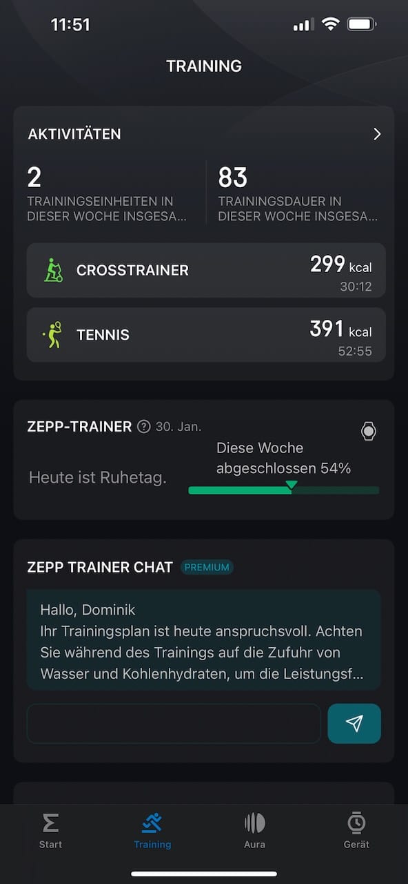 Zwar unterstützt die T-Rex 3 Schlafaufzeichnung, jedoch wurde diese im Test nicht aktiv genutzt – unter anderem aufgrund des eher klobigen Designs, das für nächtliches Tragen weniger komfortabel ist. Grundsätzlich gilt: Die Genauigkeit von Schlafanalysen via Smartwatch ist technisch bedingt begrenzt und nur bedingt zuverlässig. Laut externer Tests spezialisierter Plattformen liefert auch die T-Rex 3 hier keine durchgängig präzisen Ergebnisse. Zudem erfordert die detaillierte Auswertung der Schlafqualität in der Zepp-App ein kostenpflichtiges Abonnement (Zepp Aura), was die Nutzung für viele unattraktiv macht.