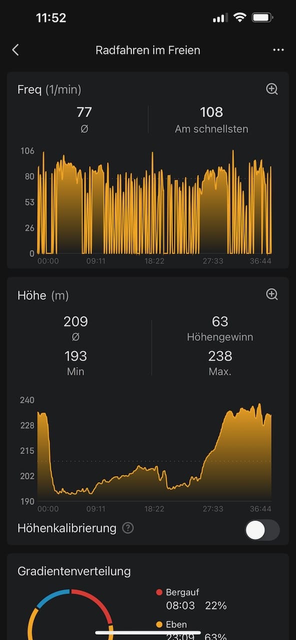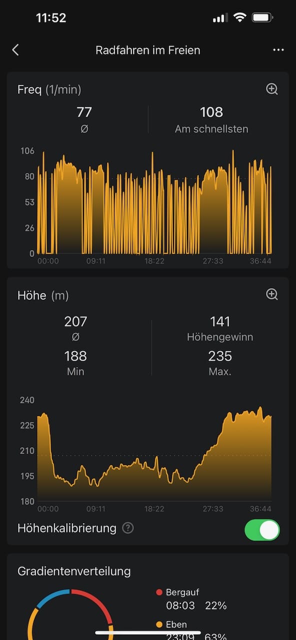 Die Genauigkeit der Herzfrequenzmessung liegt laut spezialisierten externen Tests auf dem Niveau einer Apple Watch oder Garmin. Im Test wurden jedoch in den ersten Minuten eines Trainings gelegentlich zu hohe Werte gemessen. Dieses Problem wurde durch ein Update bereits deutlich verbessert, sodass die Messungen nun auch beim Trainingsstart zuverlässiger sind. Das GPS der Uhr arbeitet abgesehen von der Höhenaufzeichnung sehr zuverlässig und liefert präzise Daten bei der Streckenaufzeichnung. Die Höhenmessung hingegen zeigte sich weniger präzise. Obwohl die Werte in der Zepp-App nachträglich korrigiert werden können, lieferten sie teils unrealistisch hohe oder niedrige Ergebnisse. Interessanterweise waren die exportierten Daten beispielsweise nach Strava plausibel, was auf eine automatische Nachbearbeitung hindeutet. Positiv hervorzuheben ist die zuverlässige und problemlose Übertragung von Trainingsdaten zu Apple Health, was eine nahtlose Integration in das iOS-Ökosystem ermöglicht.