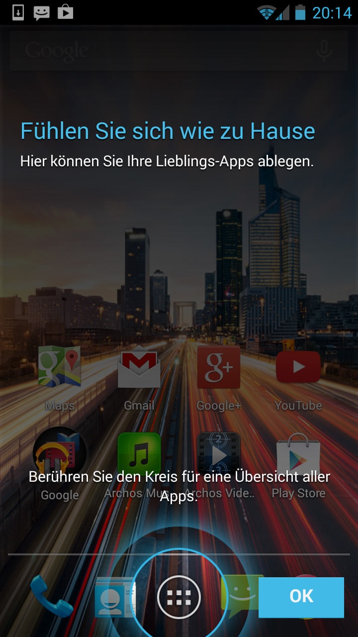 ARCHOS setzt beim 50 Helium 4G auf ein fast reines Android 4.3 Jelly Bean. Lediglich ein paar Apps wie z. B. ein Videoplayer wurden ergänzt. Dieser ist auch gut zu gebrauchen und bringt neben weiteren Codecs auch diverse Streaming-Möglichkeiten. Schade ist allerdings, dass ARCHOS kein Update auf Android 4.4 Kitkat oder 5.0 Lollipop plant. Das ist in dieser Preisklasse jedoch gang und gäbe.
