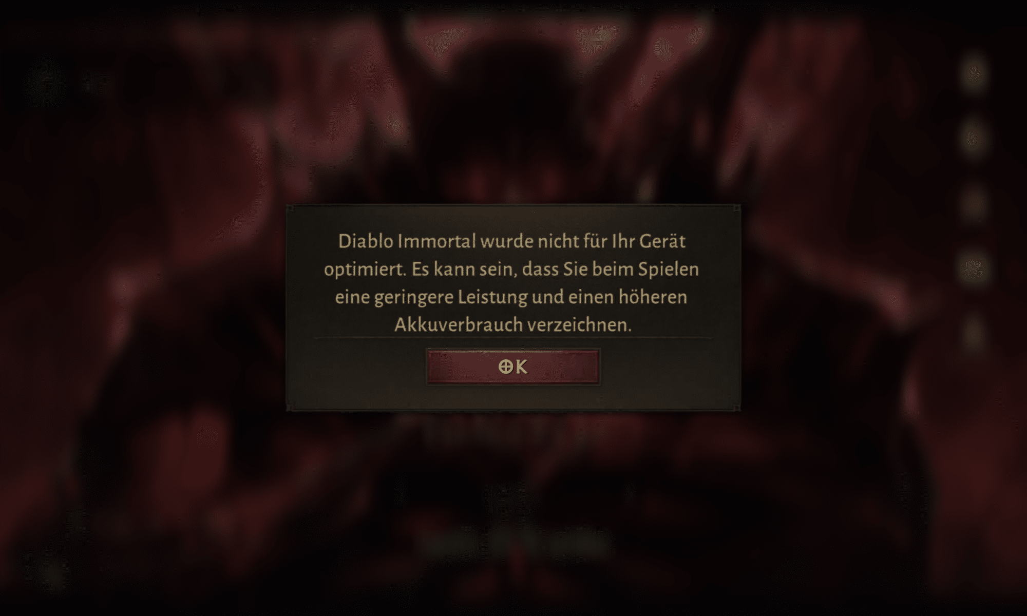 Last but not least habe ich mit Diablo: Immortal auch ein recht verbreitetes Spiel mit einer gewissen grafischen Anforderung getestet. Bereits beim Start wird man auf die nicht optimale Leistung des Fossibot DT1 hingewiesen. Auch das Spiel zeigt sich als eher zäh – es läuft zwar, aber die grafischen Finessen sind auf das Minimum reduziert. Außerdem neigt das Spiel zum Ruckeln und lädt einige Details mit ziemlicher Verzögerung. Kein wirklich empfehlenswertes Erlebnis.