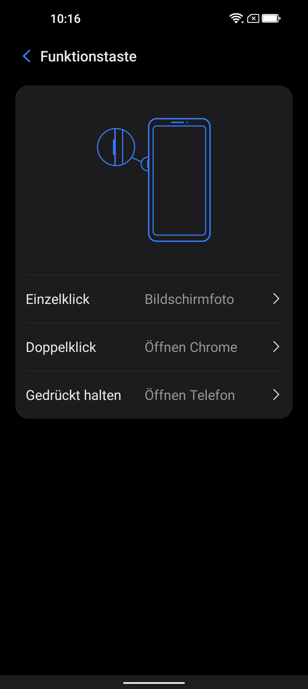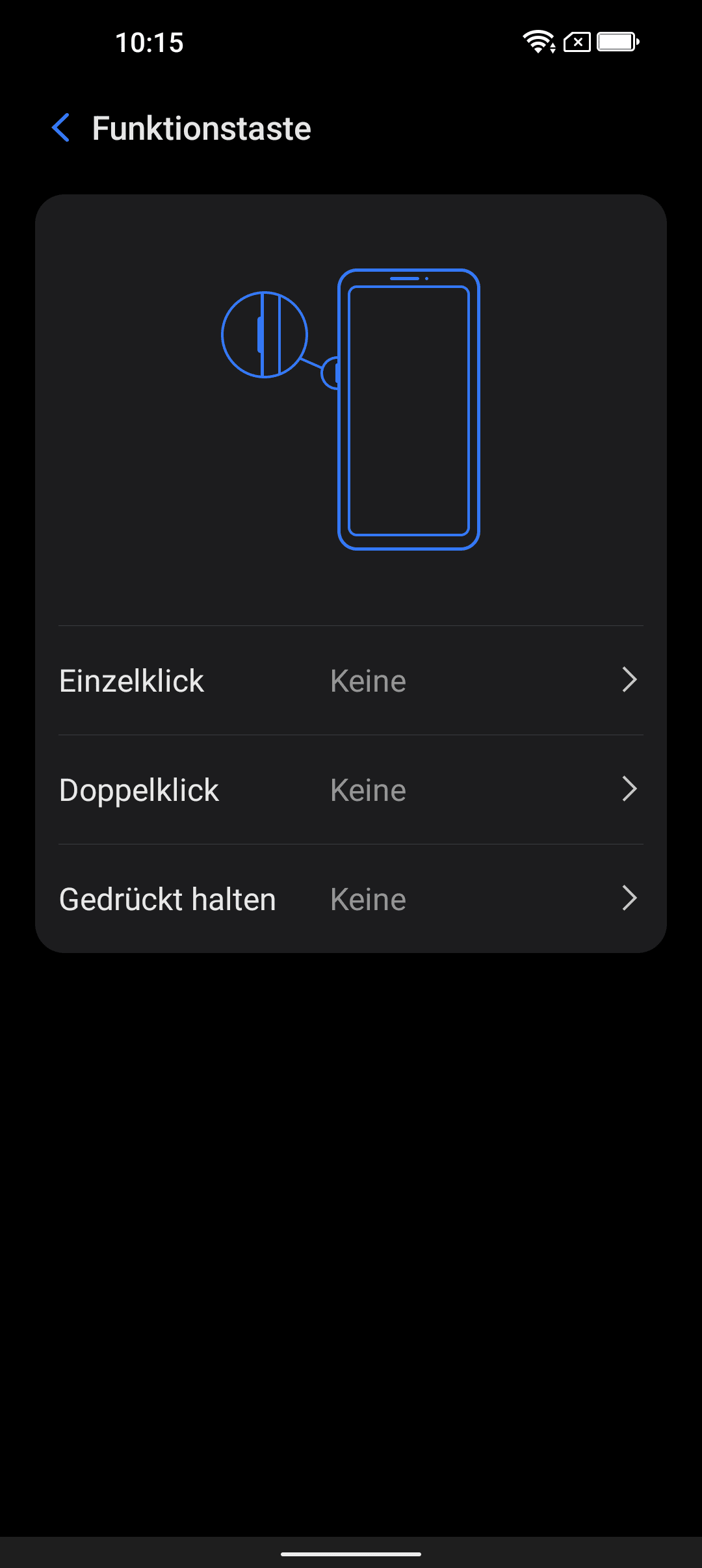 Und dann ist ja da noch die einzelne Taste auf der linken Seite des Smartphones, die du frei belegen kannst. Hier kannst du einem einmalige oder zweimaligen Drücken, sowie dem Gedrückt halten jeweils eine Funktion zuweisen. Vom Anfertigen eines Screenshots bis hin zum Öffnen einer App. Sehr praktisch.