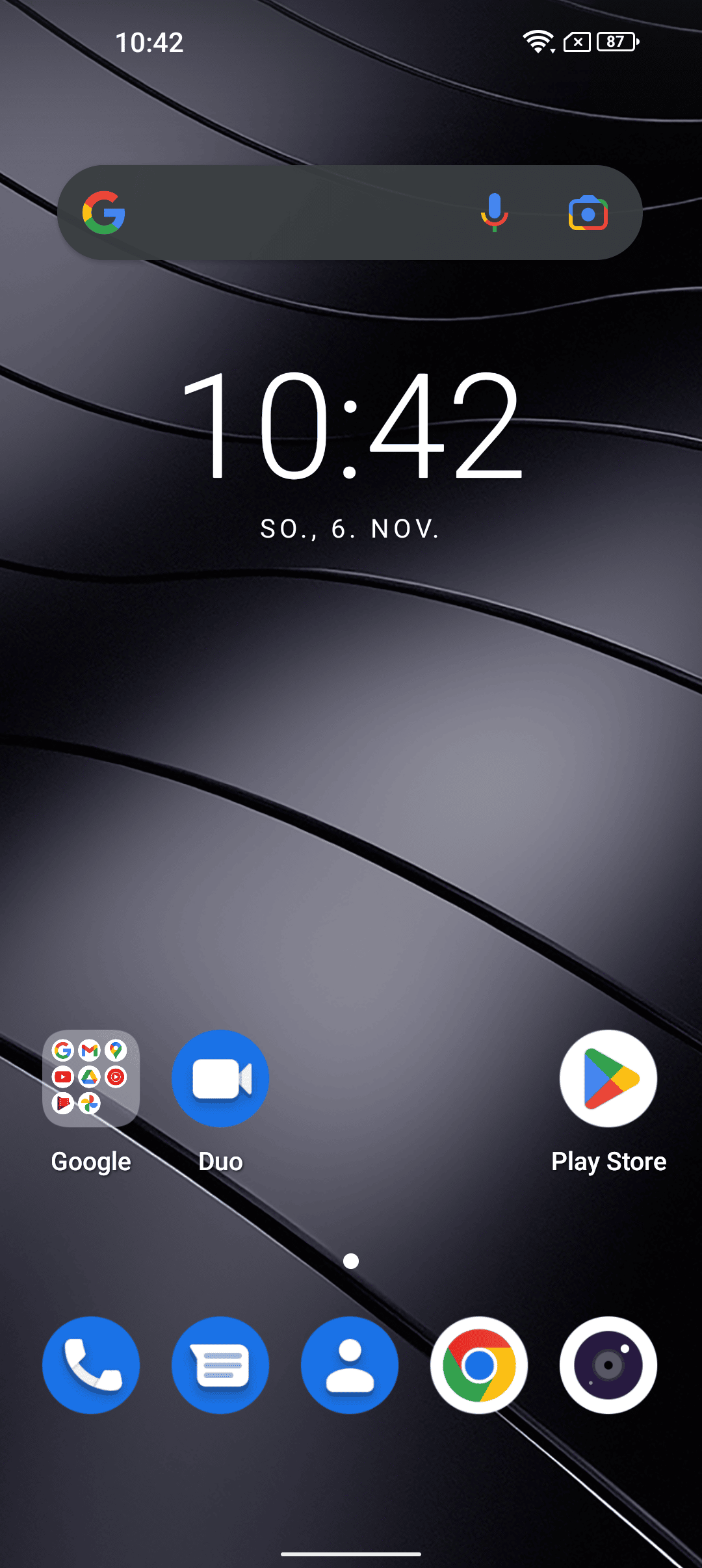 Unterstützt wird das schnelle Systemtempo des Gigaset GX6 auch durch eine Software, die ohne sämtliche Bloatware daherkommt. Der Hersteller setzt auf eine nahezu originale Android-12-Oberfläche, auf der du lediglich die typischen Google-Apps, ein UKW-Radio und ein Barometer findest.