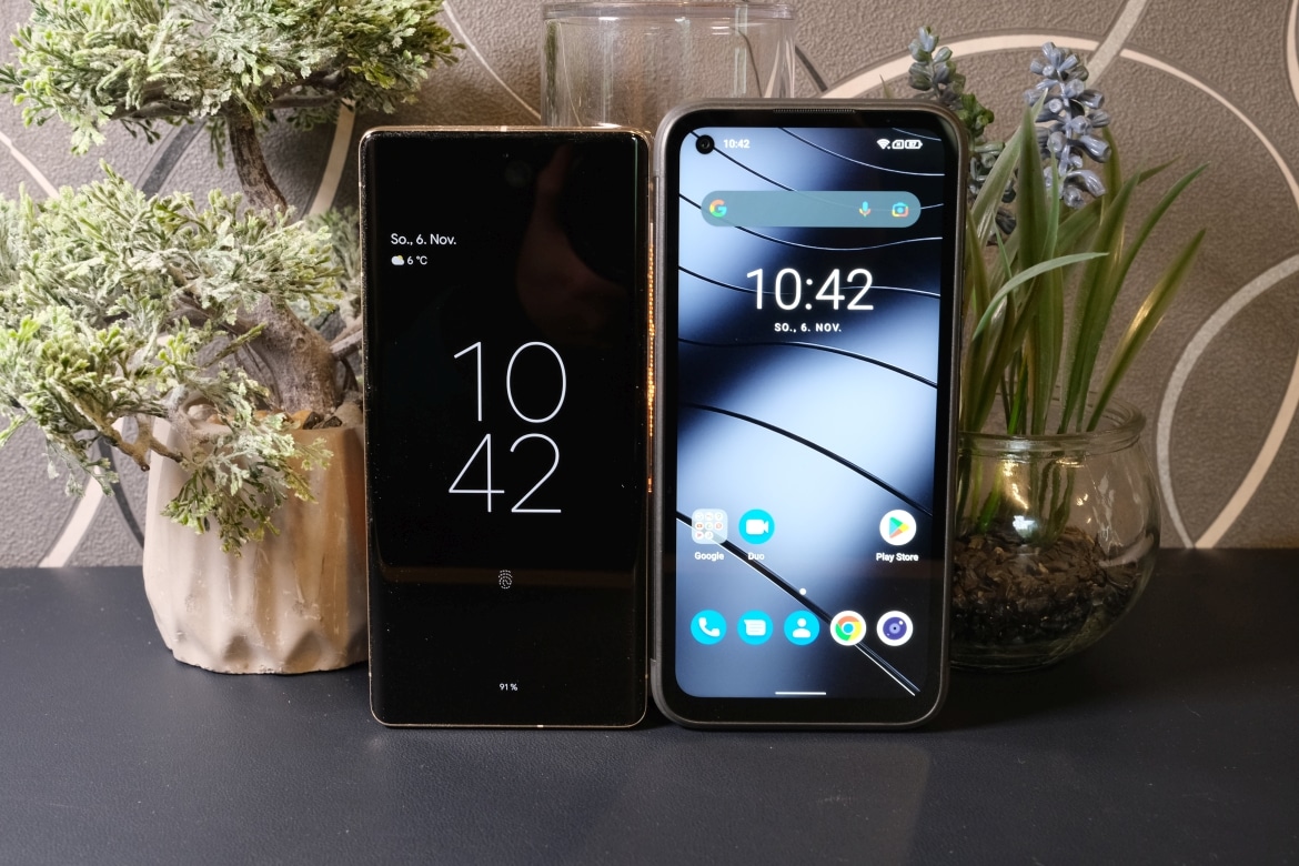Ein dicker Brummer ist das selbsternannte „edelste 5G-Outdoor-Smartphone“ aber allemal. Mit Abmessungen von 170,7 mm x 82,2 mm x 11,9 mm und einem Gewicht von 278 Gramm fällt es größer, vor allem aber weitaus schwerer aus als die meisten gewöhnlichen Smartphones. Im direkten Vergleich wirkt das Google Pixel 7 Pro (unser Test) geradezu klein – und das trotz größeren Displays.