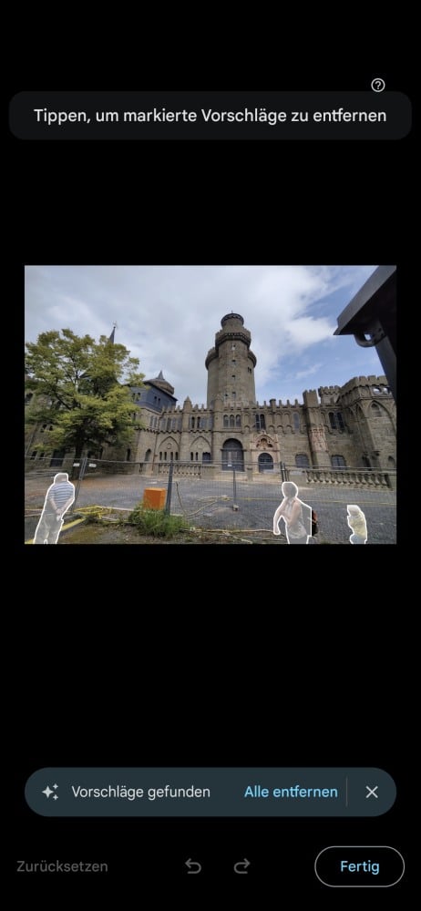 Das funktioniert mal gut und mal weniger zufriedenstellend. Vor allem die manuelle Entfernung von unerwünschten Elementen klappt nicht immer zuverlässig.