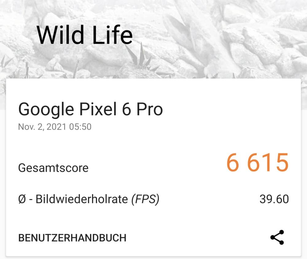 | Benchmark-Ergebnisse des Pixel 6 Pro | |