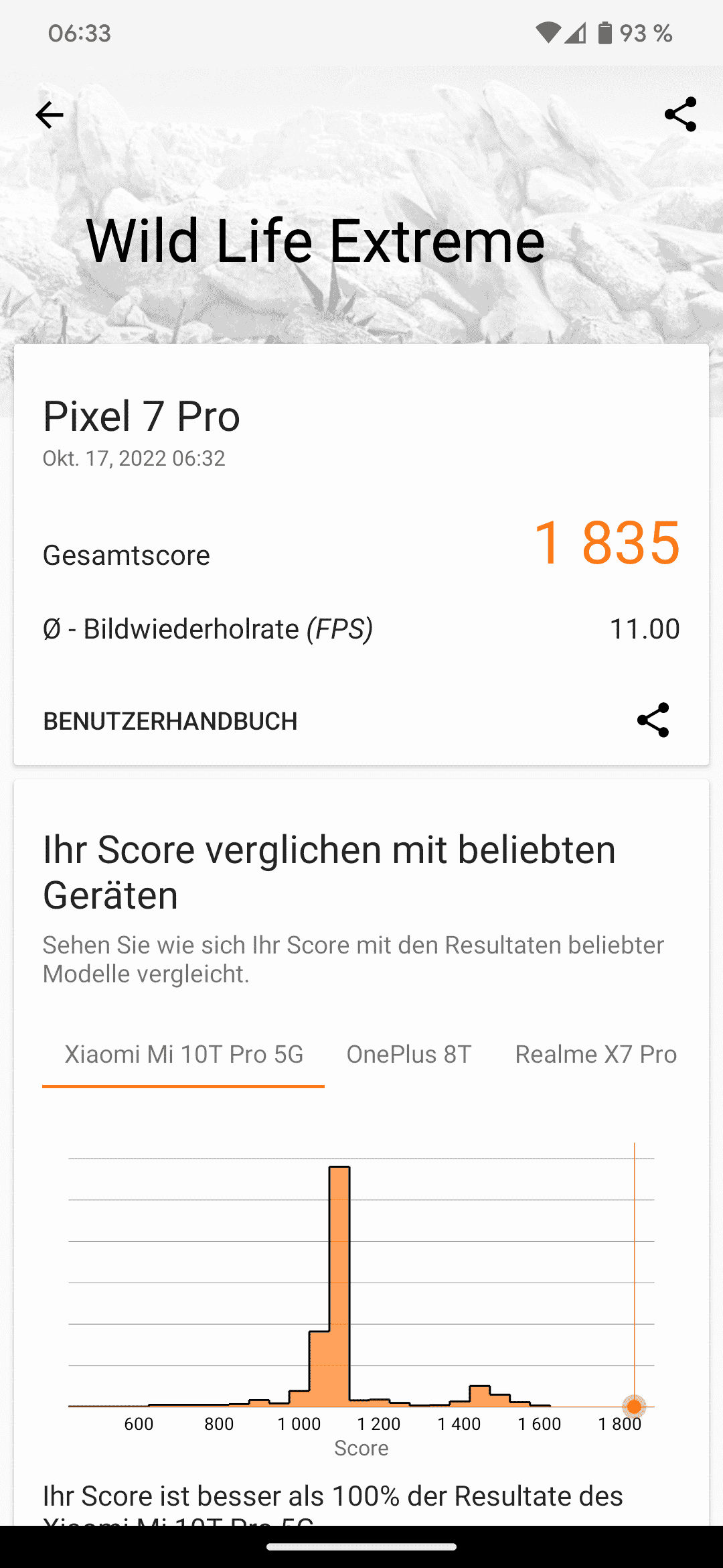 Dass der Tensor G2 tatsächlich deutlich effizienter zur Tat schreitet, zeigt sich in der Akkulaufzeit des Google Pixel 7 Pro. Hier war der Vorgänger trotz einer Kapazität von 5.003 mAh lediglich Durchschnitt, wenngleich sich die Laufzeit seit dem Release spürbar verbessert hat.