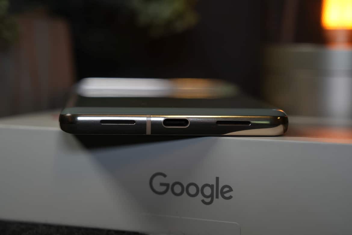 Das 6,7-Zoll-Display, der USB-C-Port an der Unterseite und die ausschließlich an der rechten Seite angesiedelten Knöpfe in Form des Power-Buttons und der Laut- und Leisertaste gleichen weitestgehend dem Pixel 6 Pro. Allerdings sind die Bedienelemente in diesem Jahr etwas weiter nach unten gerutscht, was die Bedienbarkeit deutlich erleichtert.