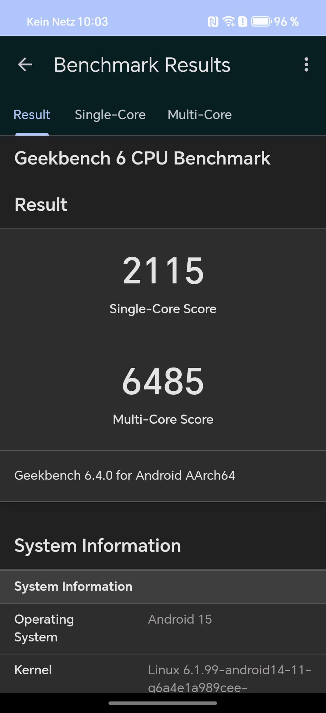 | Geekbench 6 Multi-Core | 6.485 Pkt. |