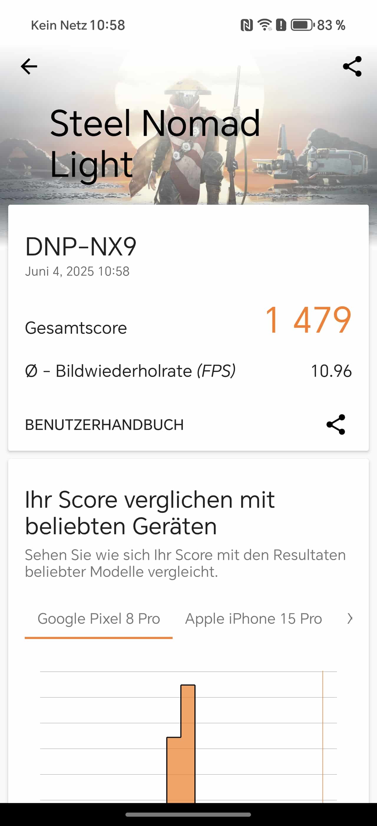 | 3DMark Steel Nomad Light | 1.479 Pkt. / 10,96 fps |