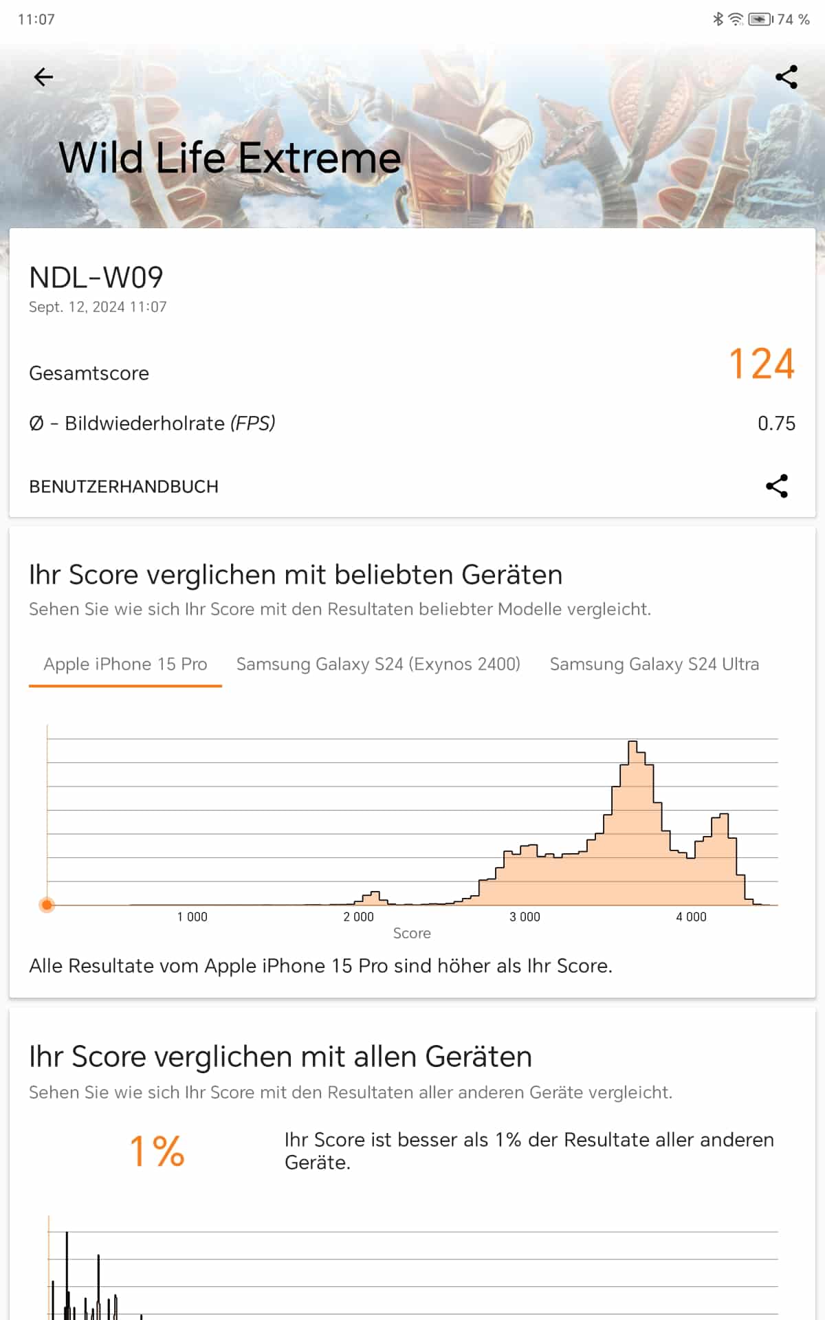 | 3DMark Wild Life Extreme | 124 Pkt. |