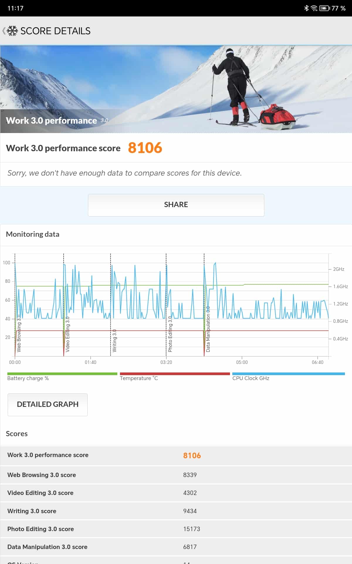 In der Praxis kann das Tablet hinsichtlich der Akkulaufzeit wirklich überzeugen. Sehr gute 10 Stunden und 45 Minuten springen im PCMark 3.0 Akku-Benchmark heraus. Das ist wesentlich mehr als beispielsweise beim Huawei MatePad 11.5″S (unser Test), das auf einen 8.800 mAh starken Akku zurückgreift.
