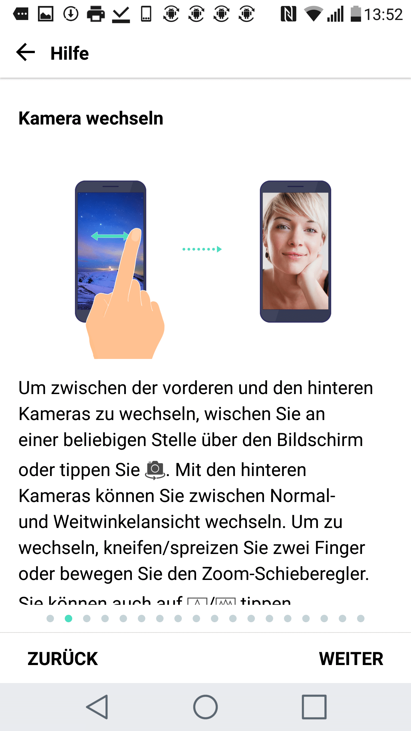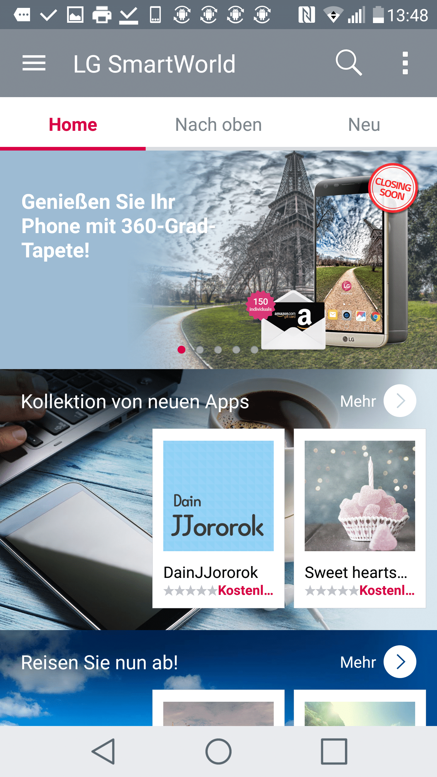 Das User Interface ist aufgeräumt und schön gestaltet. LG hat die Bloatware zwar schon reduziert, es sind aber weiterhin einige Apps vorinstalliert, wie etwa Evernote, Facebook und Instagram. Überflüssig ist meiner Meinung nach der zweite App Store namens SmartWorld, aber damit ist LG ja nicht der einzige Hersteller.