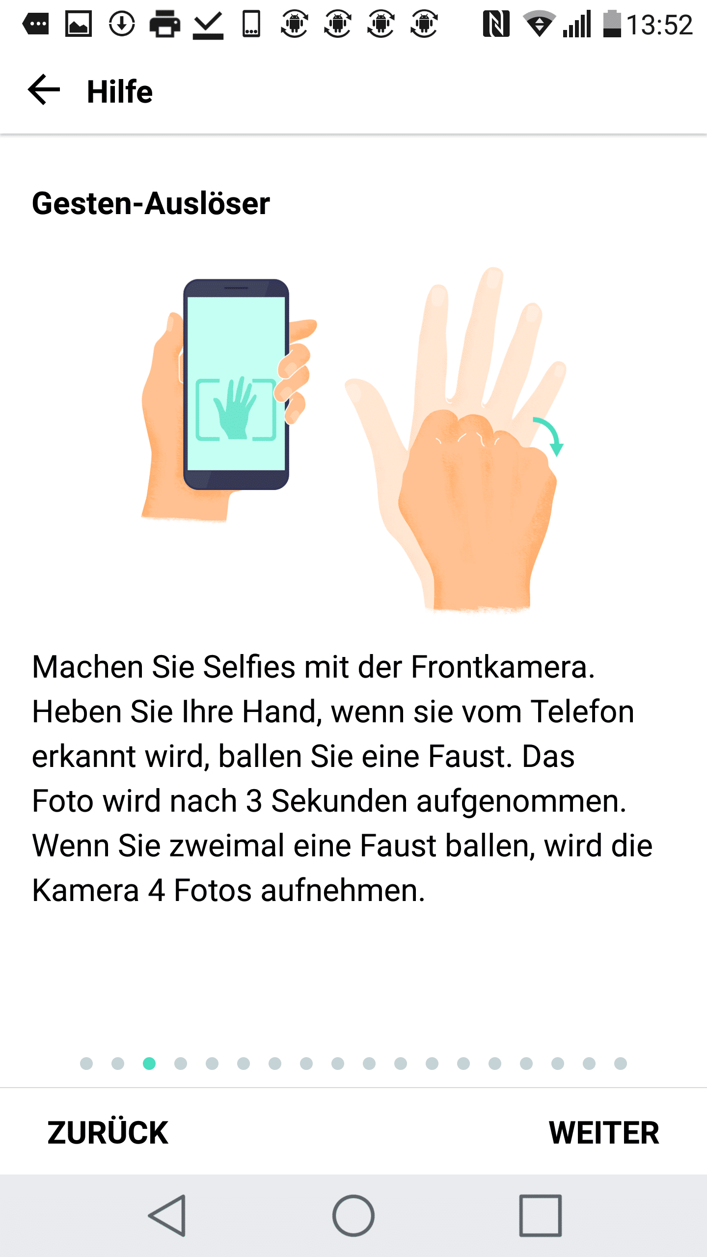 Die zusätzlichen Tasten bieten alle Funktionen, die man benötigt. Es gibt einen Schalter, um die Kamera-App zu starten, welchen LG sich eigentlich auch hätte sparen können. Auf dem Auslöse-Knopf wäre die Funktion auch gut gewesen. Den gibt es nämlich auch noch. Und das sogar einmal für Fotos und einmal für Videos – da muss man sich erstmal dran gewöhnen. Der Foto-Auslöser ist auch noch zweistufig, um zuerst zu fokussieren und dann auszulösen. Mir haben die Druckpunkte des Kamera-Moduls nicht besonders gut gefallen, doch das ist Geschmackssache.