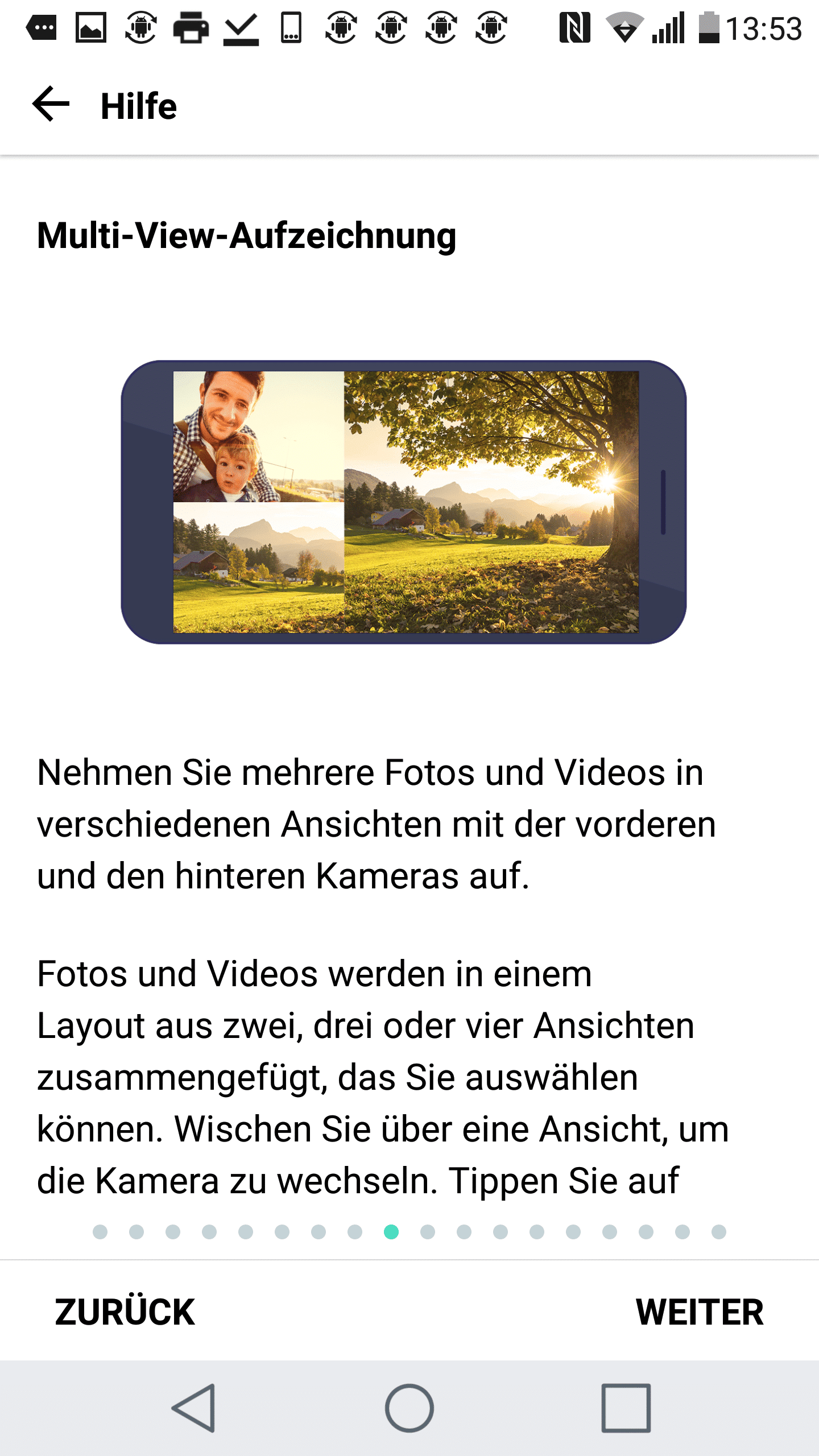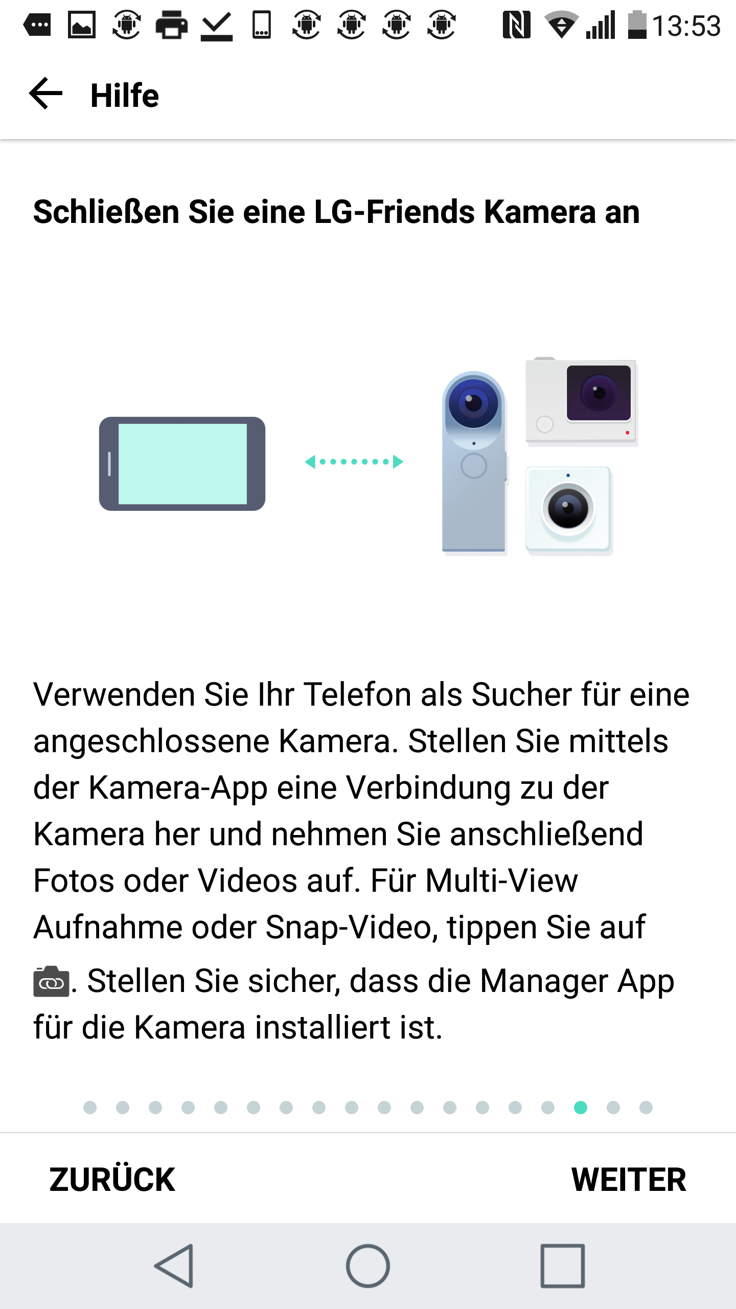 Auf der Rückseite befinden sich gleich zwei Kameras, wovon die eine mit 16 Megapixel auflöst und die andere mit 8 Megapixel – dafür jedoch mit 135 Grad Weitwinkel. Auf der Vorderseite gibt es ebenfalls 8 Megapixel.