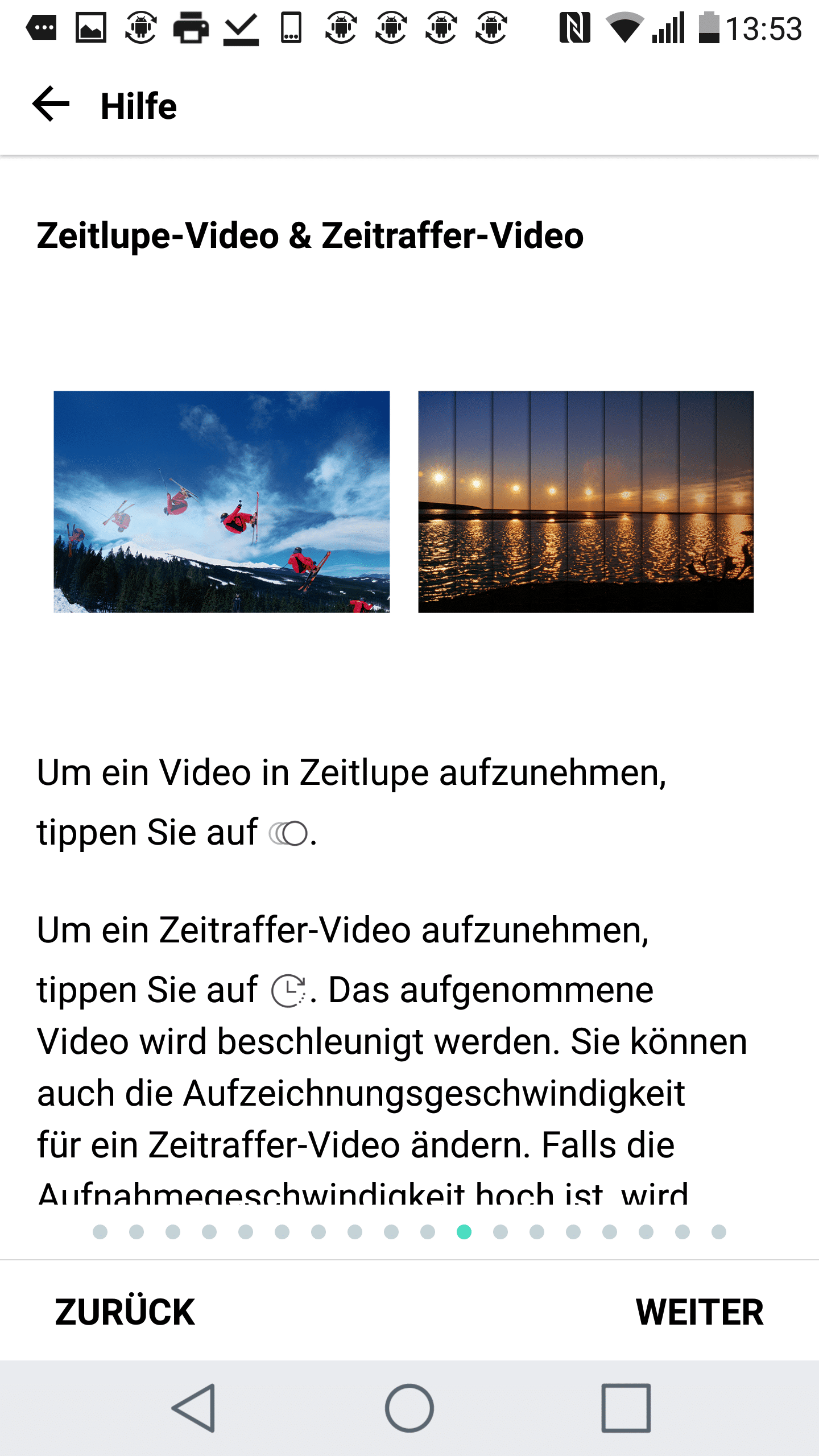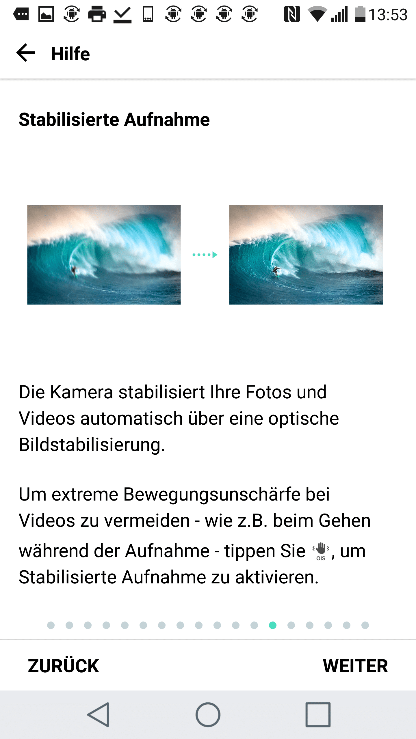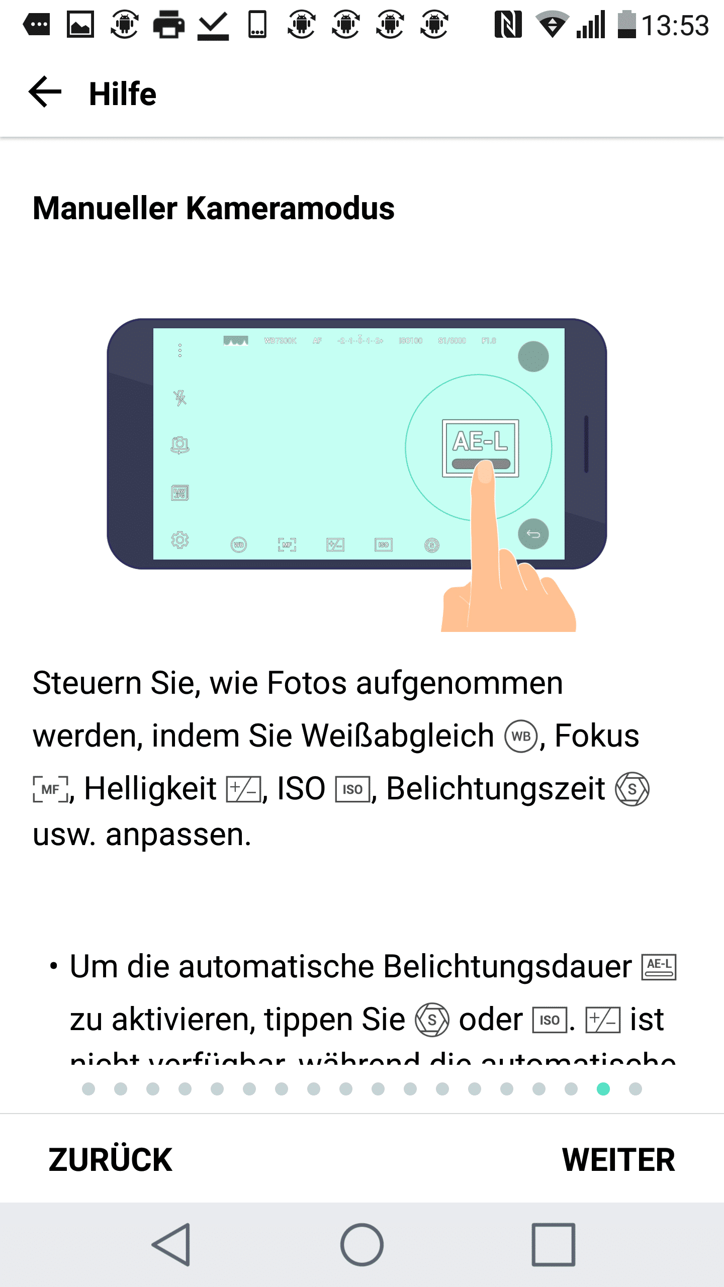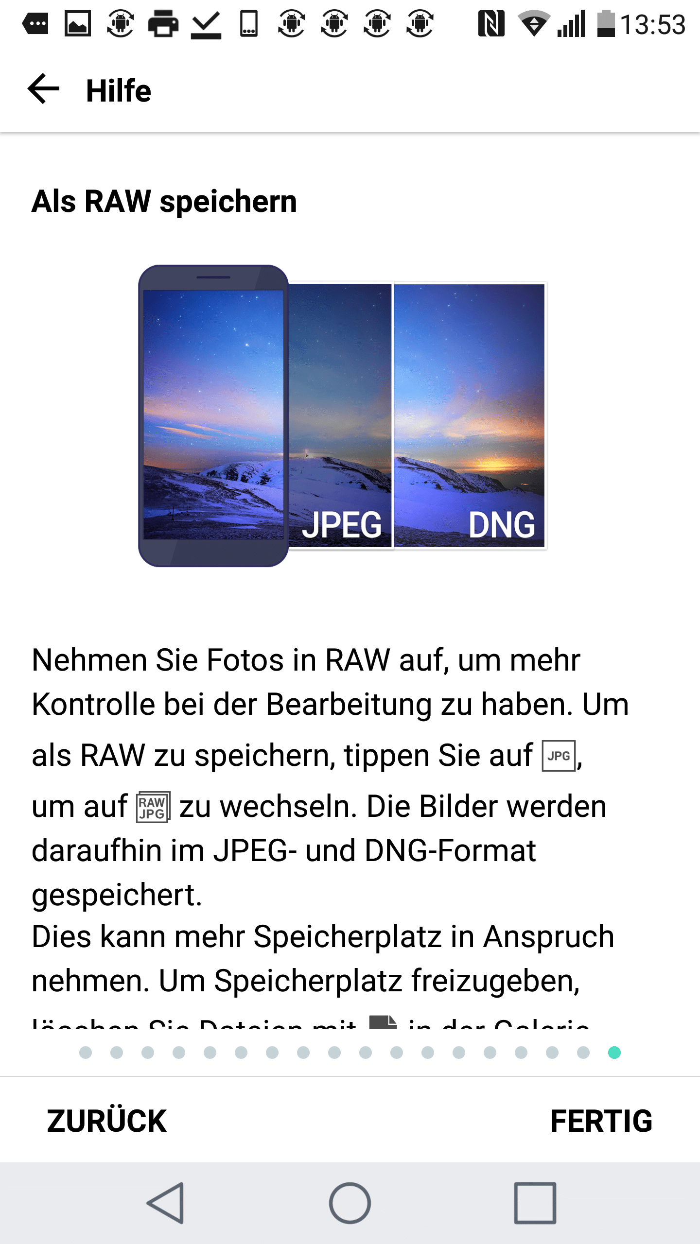 Die Kamera-App bietet viele Einstellungsmöglichkeiten. So könnt ihr den automatischen Modus wählen, oder aber Belichtungs- und ISO-Werte sowie Verschlusszeiten und Weißabgleich manuell einstellen. Außerdem können die Bilder neben JPEG auch im RAW- oder RAM-Format gespeichert werden. Somit könnt ihr diese später besser nachbearbeiten.