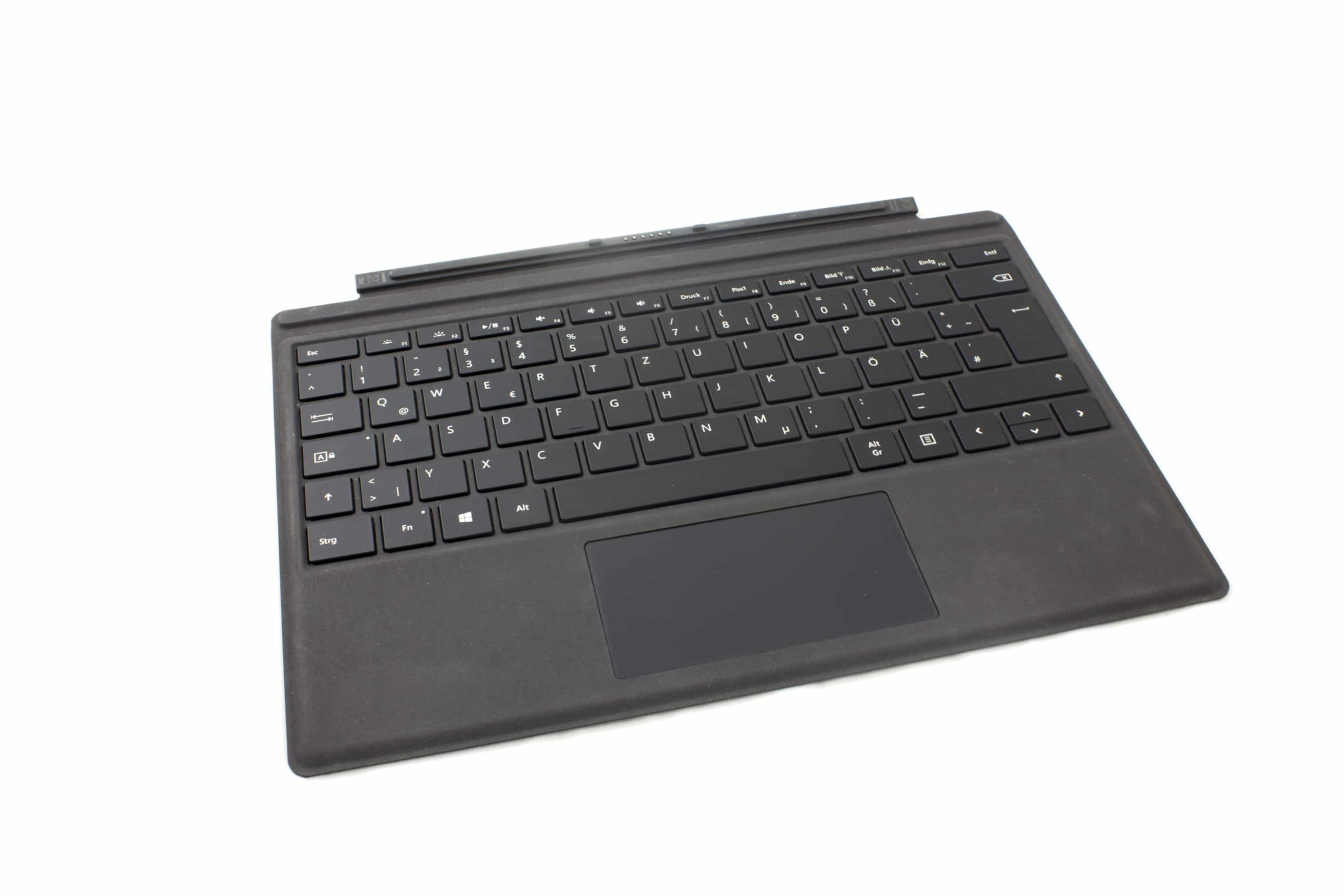 Zum Type Cover kann und will ich Microsoft einen Daumen nach oben geben. Hervorragende, noch straffe Tasten mit einem klaren Druckpunkt. Trotz der Größe der Tastatur sind immer noch Abstände zwischen den Tasten. Wird sie angewinkelt, biegt sie sich etwas und man hört das Tippen deutlicher. Das Touch-Panel gleitet angenehm und ist präzise. Das Einrasten am unteren Anschluss klappt wie von Geisterhand automatisch und das ganze macht einen wertigen, stabilen Eindruck. Aus meiner Sicht einziger Kritikpunkt ist die Oberfläche. Diese ist rau, aus einem robusten Stoff, ein wenig wie Wildleder und ich habe Bedenken, dass diese irgendwann abgegriffen wirkt oder salopp gesagt – speckig werden kann. Meiner Laptop-Tastatur kann sie zwar insgesamt gesehen nicht das Wasser reichen – trotzdem sehr gut.
