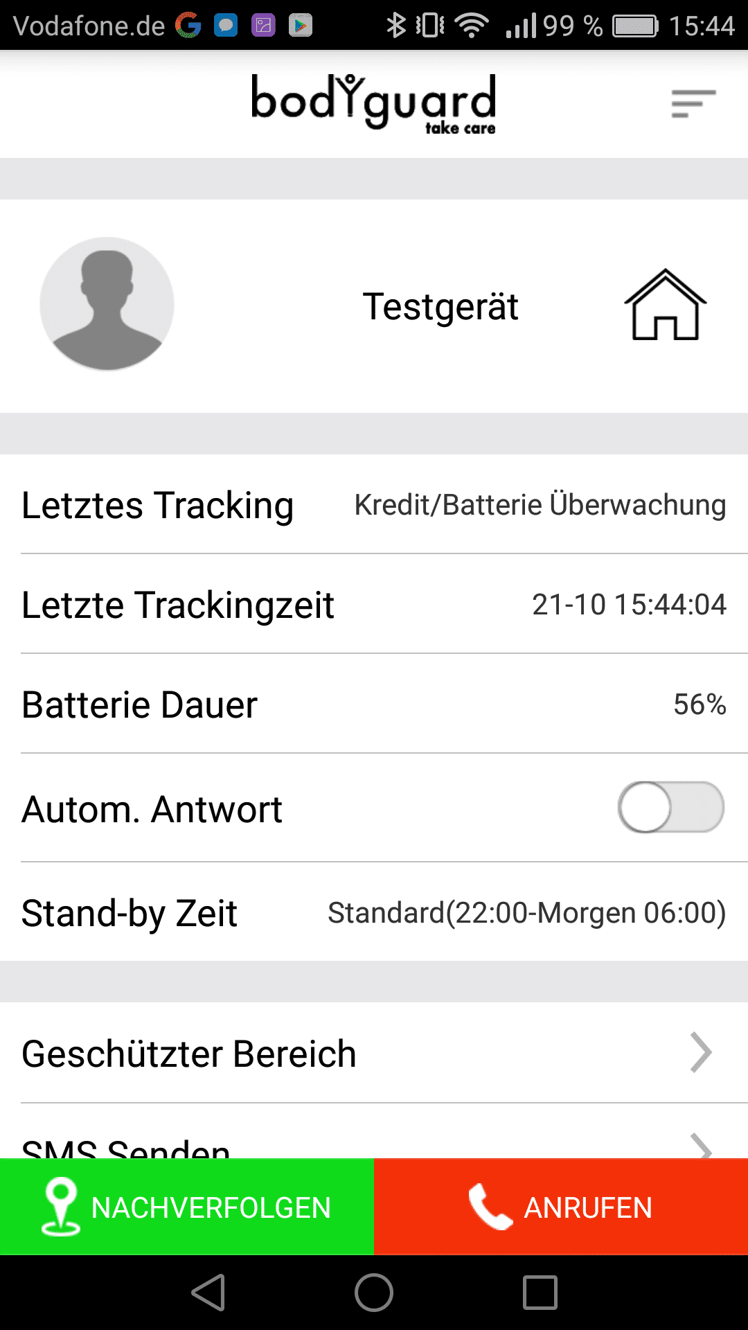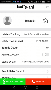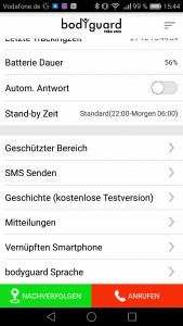 Über die App auf den verknüpften Smartphones kann jederzeit die Position des Bodyguards ermittelt werden. An der Genauigkeit des Trackings gibt es nichts zu bemängeln. Positiv hervorzuheben ist die Safety Zone, denn beim Verlassen des Bereichs werden alle Kontakte automatisch informiert.