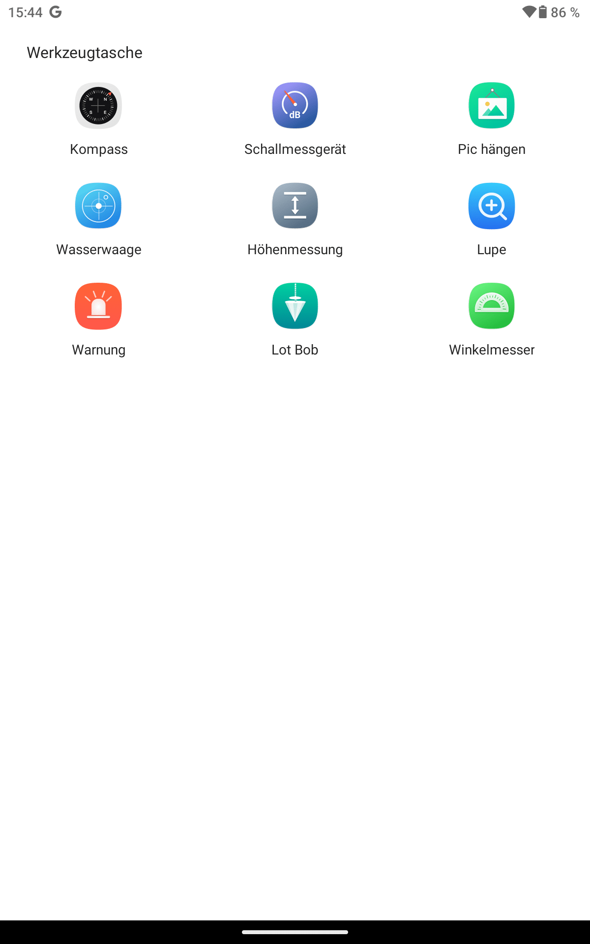 Vielmehr erwarten dich, neben den klassischen Google-Apps, einige nützliche Helferlein wie Taschenlampe, UKW-Radio oder ein Soundrekorder. Praktische Tools für den Arbeitsalltag finden sich hingegen im Ordner „Werkzeugtasche“.