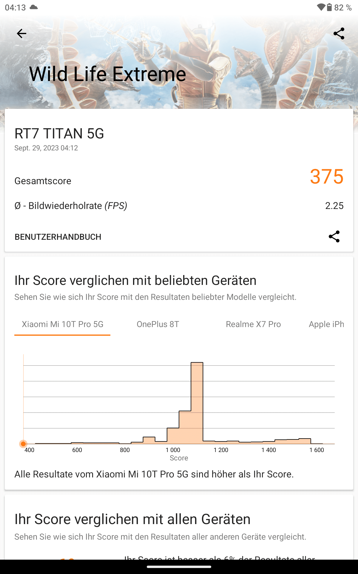| 3DMark Wild Life Extreme | 375 Punkte |