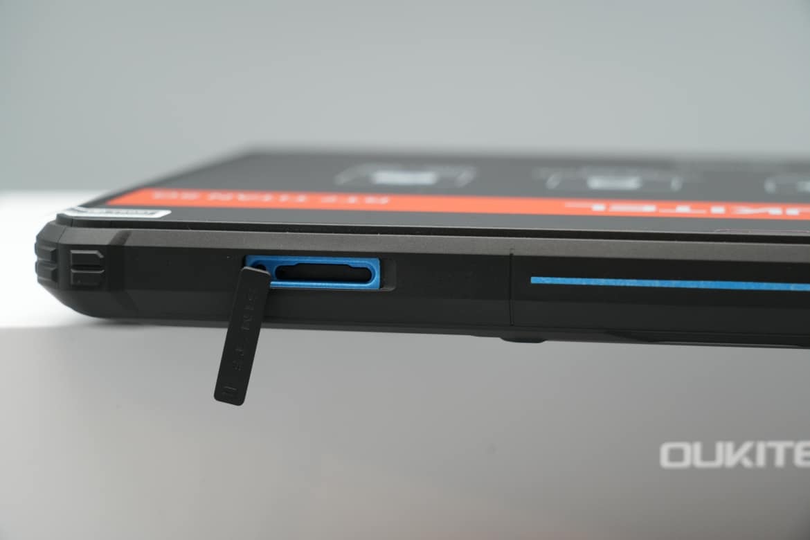 An der Oberseite setzt das RT7 auf einen kombinierten SIM- und microSD-Kartenslot, der genau wie der USB-C-Port auf der linken Seite hinter einer gummierten Abdeckung gegen das Eindringen von Staub und Wasser geschützt ist.