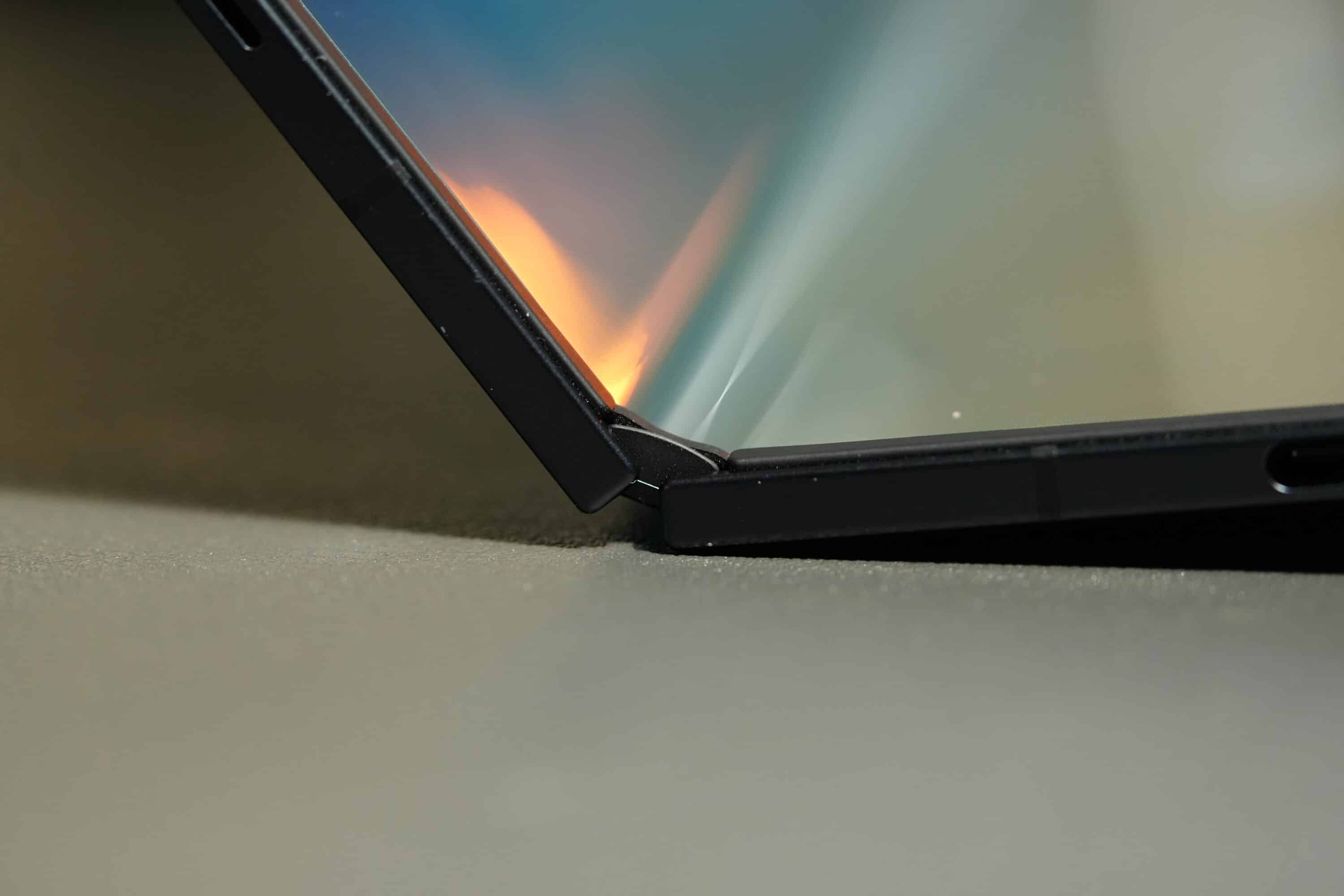 Dass die Falz in der Mitte mittlerweile quasi gar nicht mehr vorhanden ist, wirkt sich natürlich positiv auf die Dicke des Gerätes aus. Allerdings erschwert das in meinen Augen das Öffnen des Foldables, da beide Seiten ohne Raum dazwischen aufeinander aufliegen. Zumal das Scharnier recht schwergängig ist, was das Öffnen zusätzlich erschwert. Besonders bei Menschen mit großen Händen könnte das etwas knifflig werden.