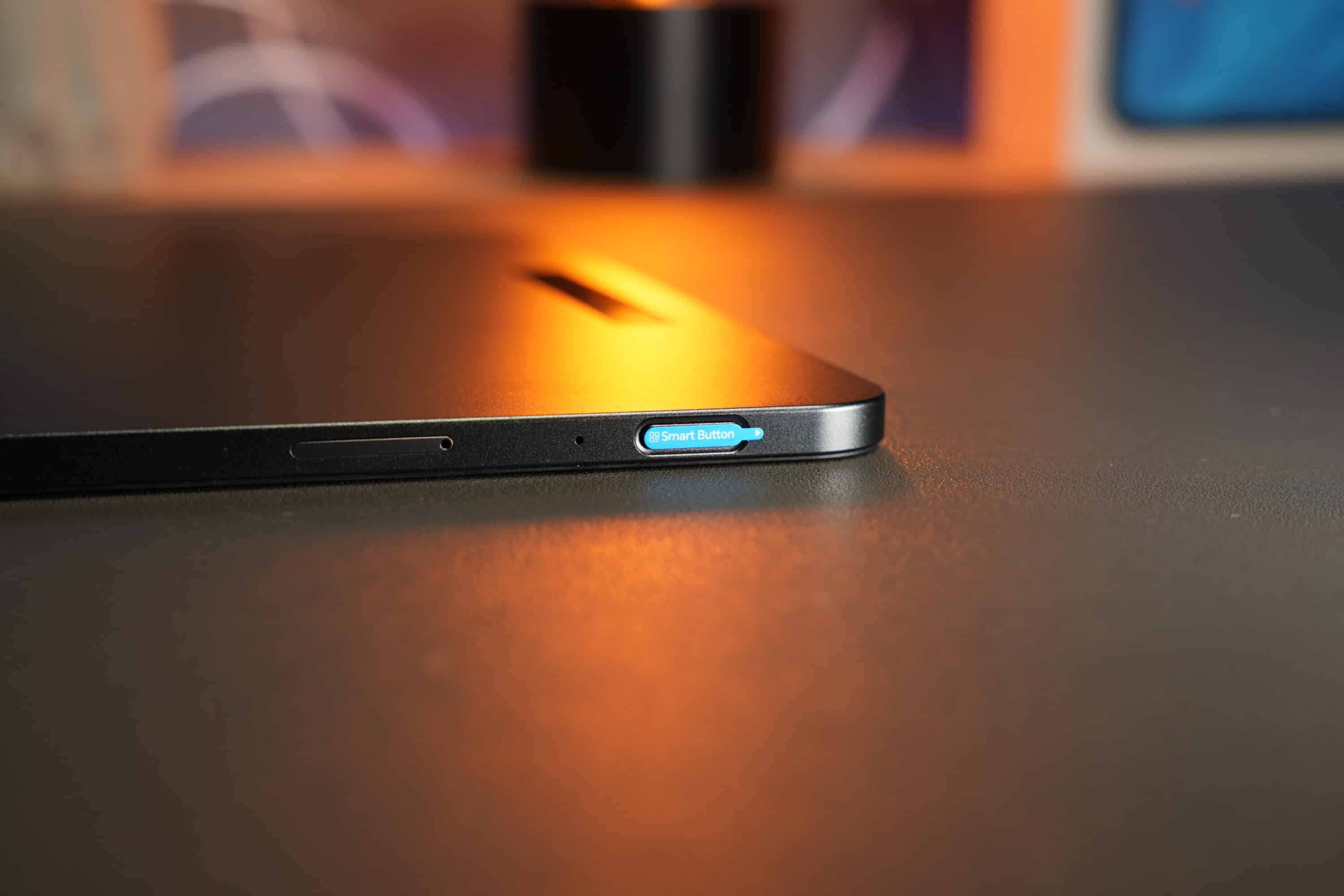 Neben dem klassischen Power-Button an der Oberseite und den Lautstärketasten an der rechten Seite inkludiert der Hersteller einen Smart-Button ganz unten rechts am Rahmen. Dieser wechselt per Knopfdruck zwischen verschiedenen Modi, was je nach Anwendung spannend ist: