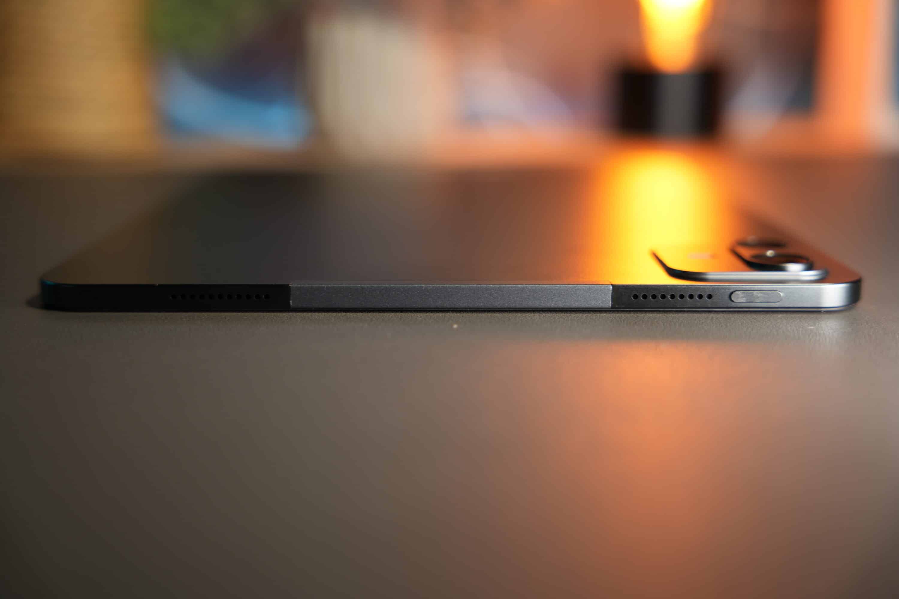 Mit Abmessungen von 279 × 211 × 7,2 mm und einem Gewicht von 674 g liegt es trotz seiner Größe angenehm in der Hand, auch wenn längere Einsätze eher eine Ablagefläche empfehlen. Die Displayränder sind etwas dicker als bei einigen Premium-Konkurrenten, was optisch vielleicht nicht ganz so modern wirkt, in der Praxis aber durchaus Vorteile bringt: Es gibt genügend Platz, um das Gerät festzuhalten, ohne unbeabsichtigt Eingaben auf dem Bildschirm auszulösen. Die Verarbeitung wirkt insgesamt hervorragend und das Tablet vermittelt einen robusten, langlebigen Eindruck.