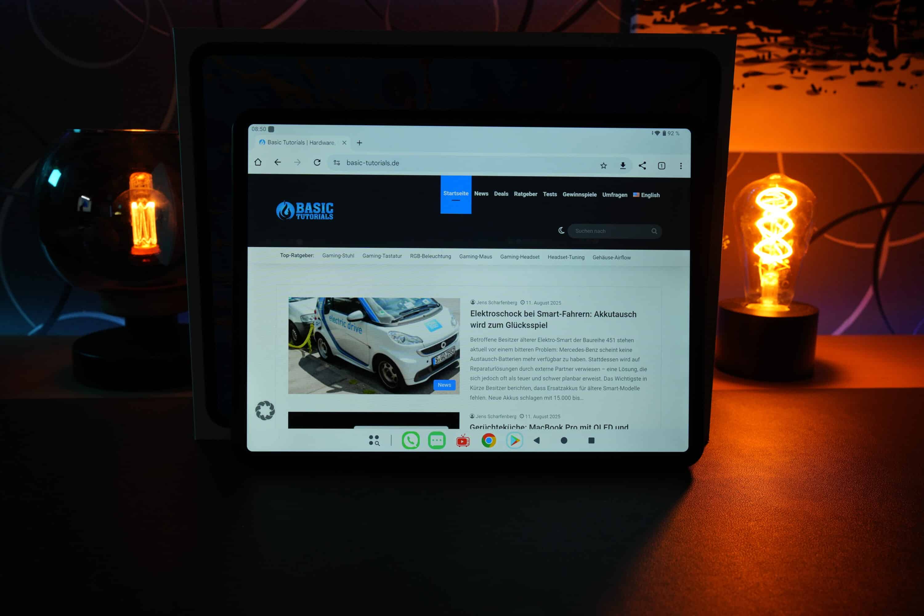 Die Pixeldichte ist hoch genug, um Inhalte scharf darzustellen, und die Farbwiedergabe wirkt durchaus kräftig und lebendig. Die Helligkeit sowie die Abtastrate werden im offiziellen Datenblatt nicht beziffert, im praktischen Einsatz liefert das Panel jedoch ein insgesamt angenehmes Bild. Lediglich die Bildrate von 60 Hz enttäuscht etwas. Gerade, wer auf dem Tablet auch mal zocken will, würde sich über mehr Hertz freuen.