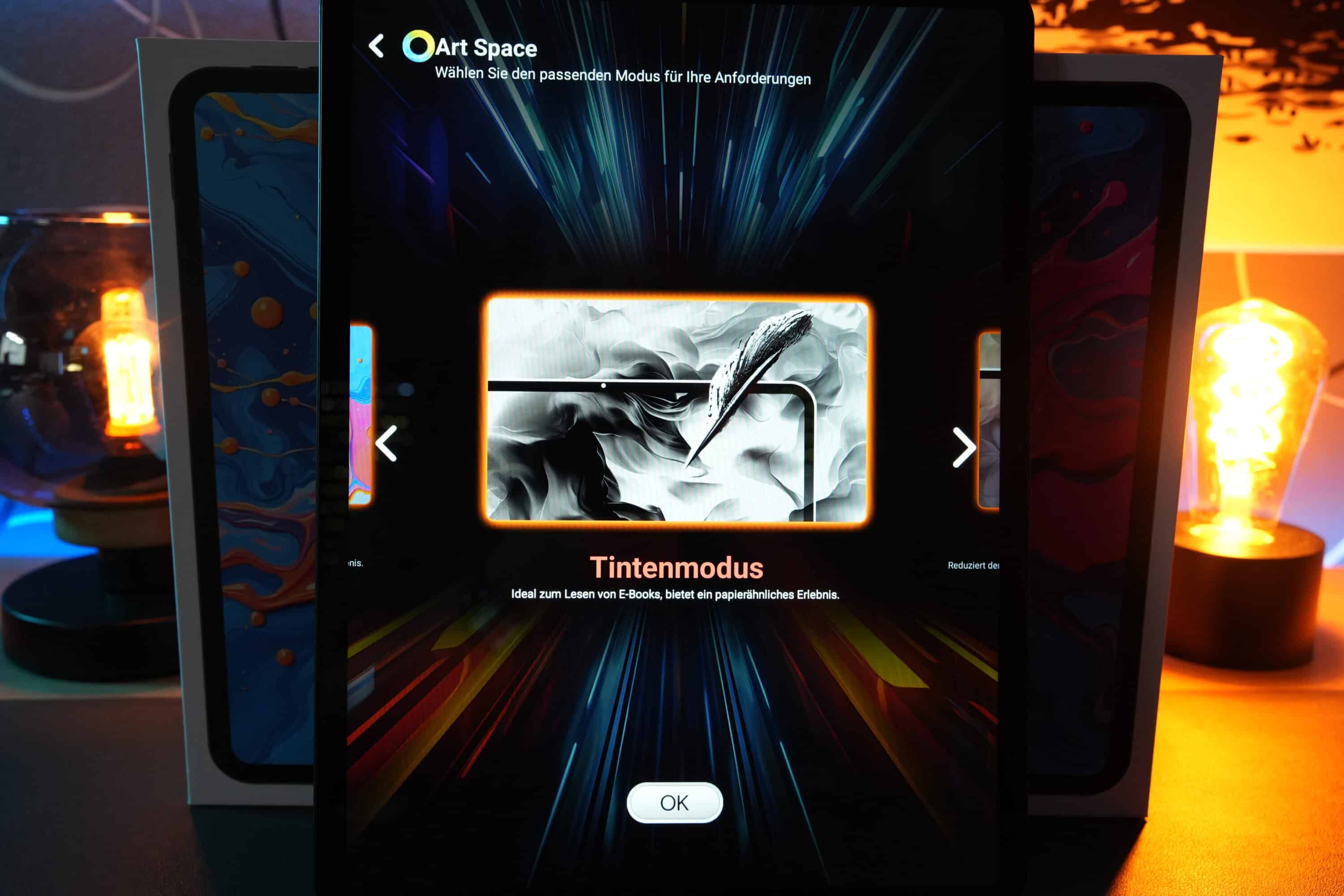 Der Farbmodus bringt die klassische Tablet-Erfahrung. Der E-Ink-Modus in Schwarz-Weiß eignet sich für das Lesen von Büchern und Co, während der Pastellmodus die Farbintensität verringert und ideal zum Zeichnen geeignet ist.