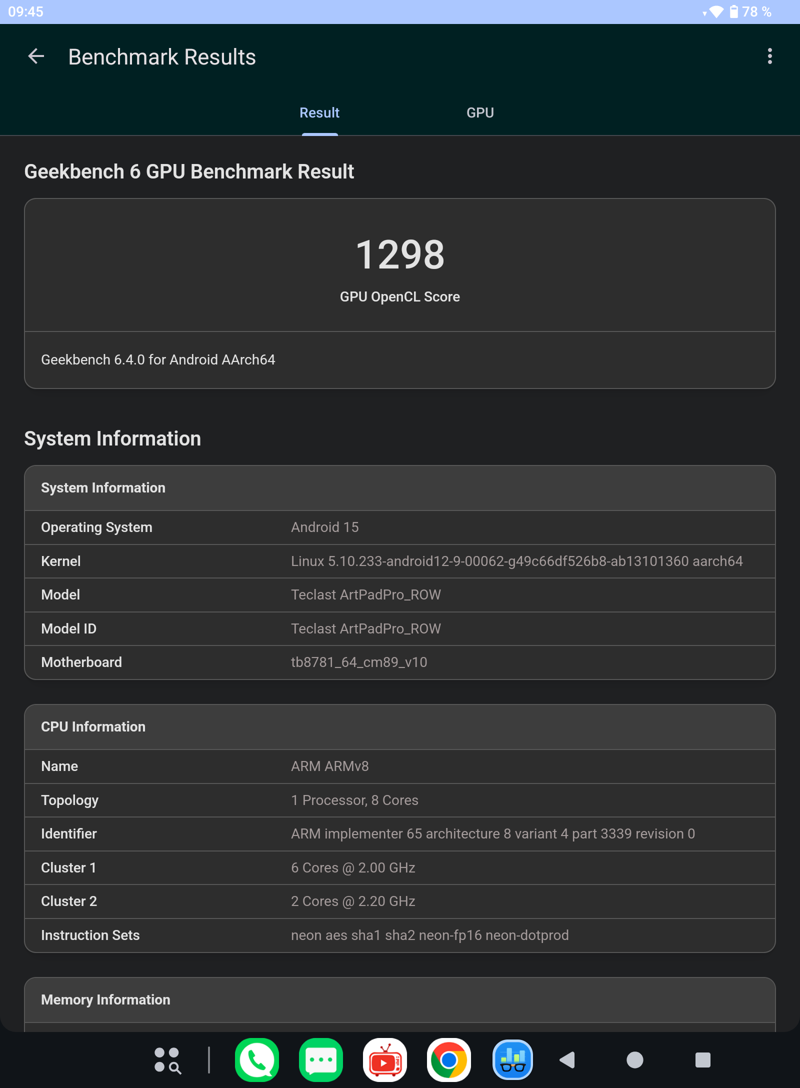 | Geekbench 6 GPU | 1.298 Pkt. |