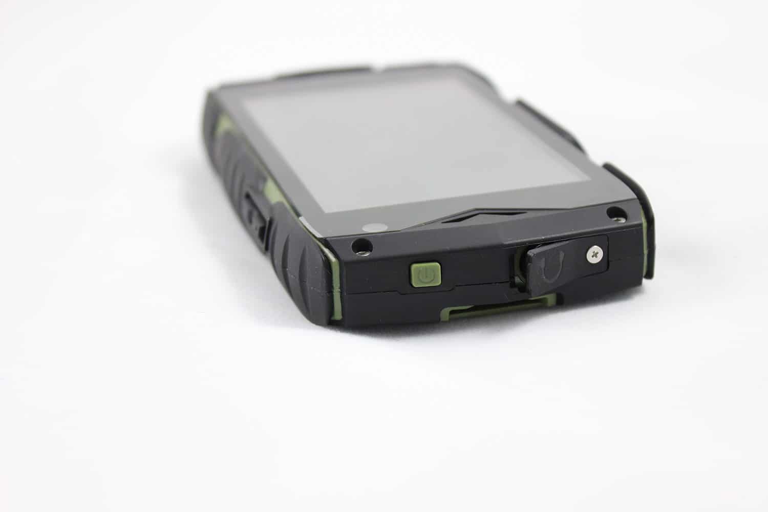 Nachdem alles sitzt und der Deckel wieder drauf ist, kann es nun also losgehen. An der Oberseite des Outdoor Smartphones befindet sich der Powerbutton, welcher, wie man es von Android-Geräten gewohnt ist, kurz gedrückt gehalten werden muss.