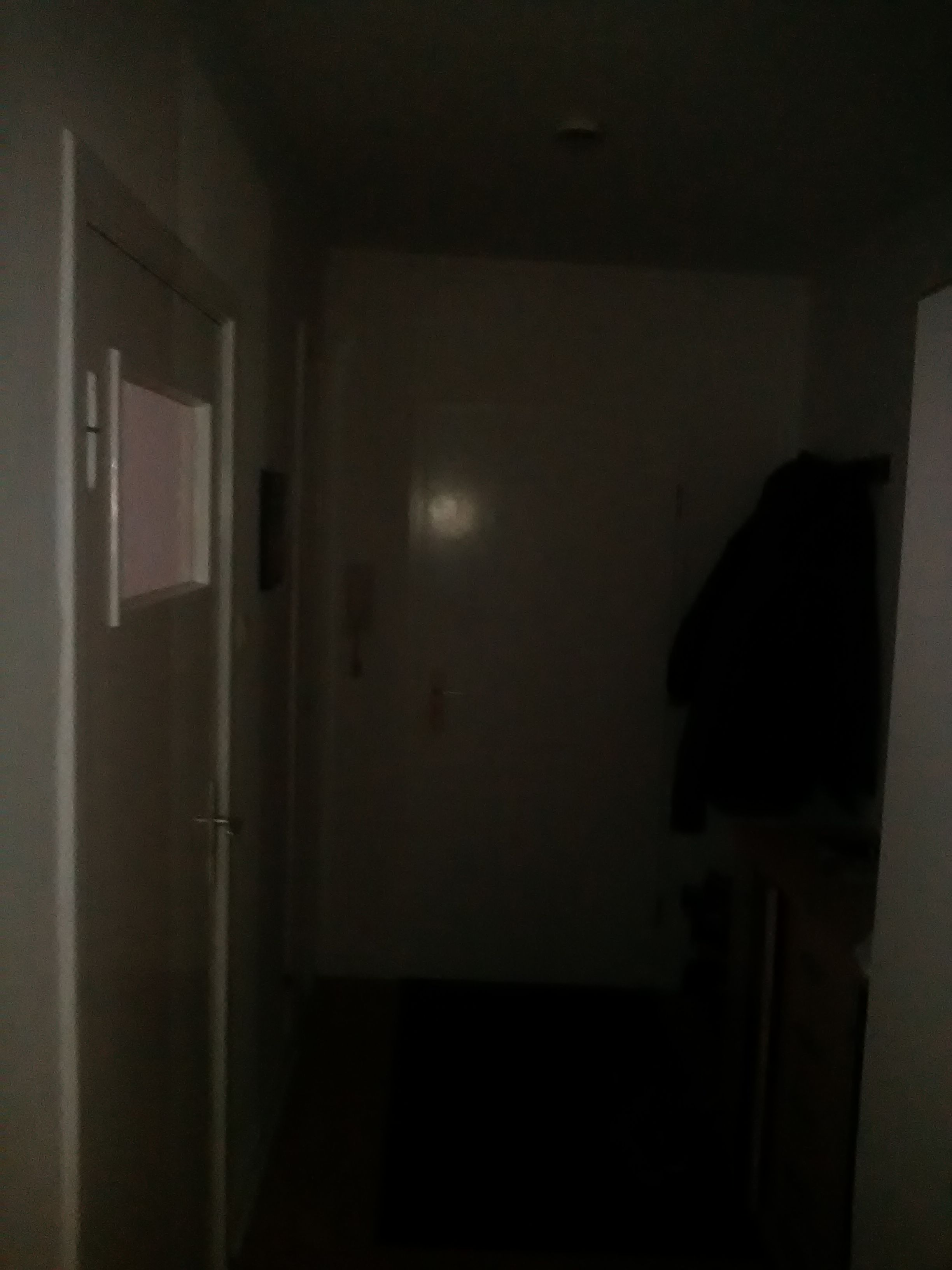 Das erste Bild ist ohne Deckenbeleuchtung, allerdings mit automatischem Blitz entstanden. Das zweite Bild dagegen ist mit Deckenbeleuchtung entstanden. Beide Bilder sind total verrauscht, genauso wie das Video: