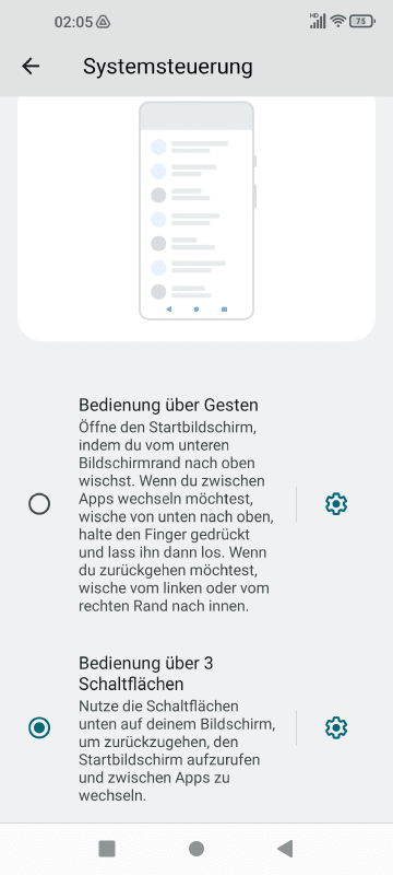 Manchen wird das Fehlen der unteren Funktionstasten auffallen. Ihre Funktion wird standardmäßig von Gestiken übernommen, die vom unteren Bildschirmrand aus ausgeführt werden. Wem diese Bedienung nicht zusagt, kann über die folgenden Unterpunkte in den Einstellungen zu den drei gewohnten Funktionstasten zurückkehren: Bedienungshilfen -> Systemsteuerelemente -> Systemsteuerung -> Bedienung über 3 Schaltflächen.