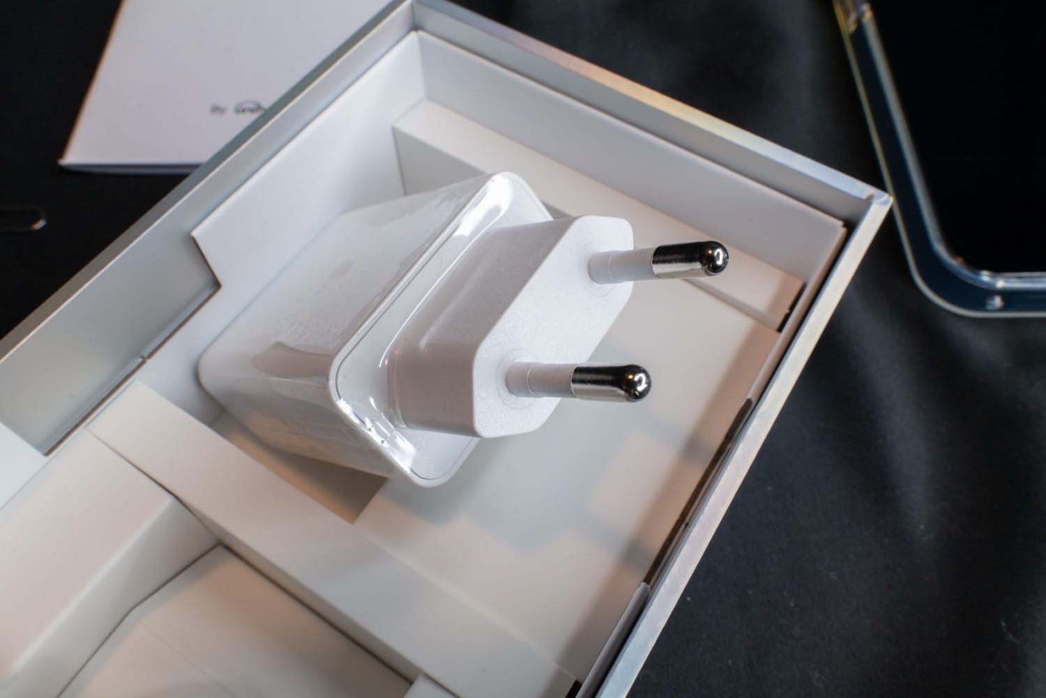 Das mitgelieferte USB-C-Kabel ist genau einen Meter lang. Der Netzadapter für die europäische Schuko-Steckdose liefert 2,0 Ampere bei 5 und 9 Volt bzw. 1,5 Ampere bei 12 Volt Spannung, auch hier fallen uns keine Mängel auf. Zu guter Letzt besteht das kleine Werkzeug für den zweiseitigen SIM-Kartenslot auch aus Metall.