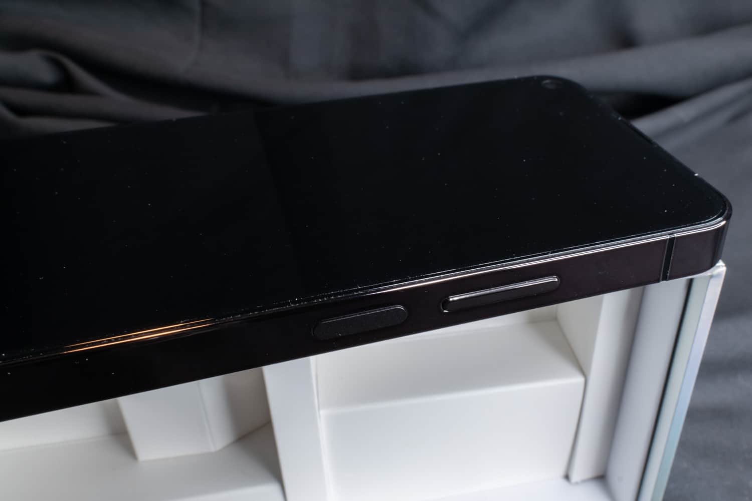 Die Ein-Aus-Taste mit integriertem Fingerabdruck-Sensor befindet sich auf der rechten Seite, darüber die Taste für die Lautstärkeregelung. Auf der linken Seite befinden sich mittig zwei einzelne Tasten, deren Funktion sich jeweils softwareseitig konfigurieren lässt.
