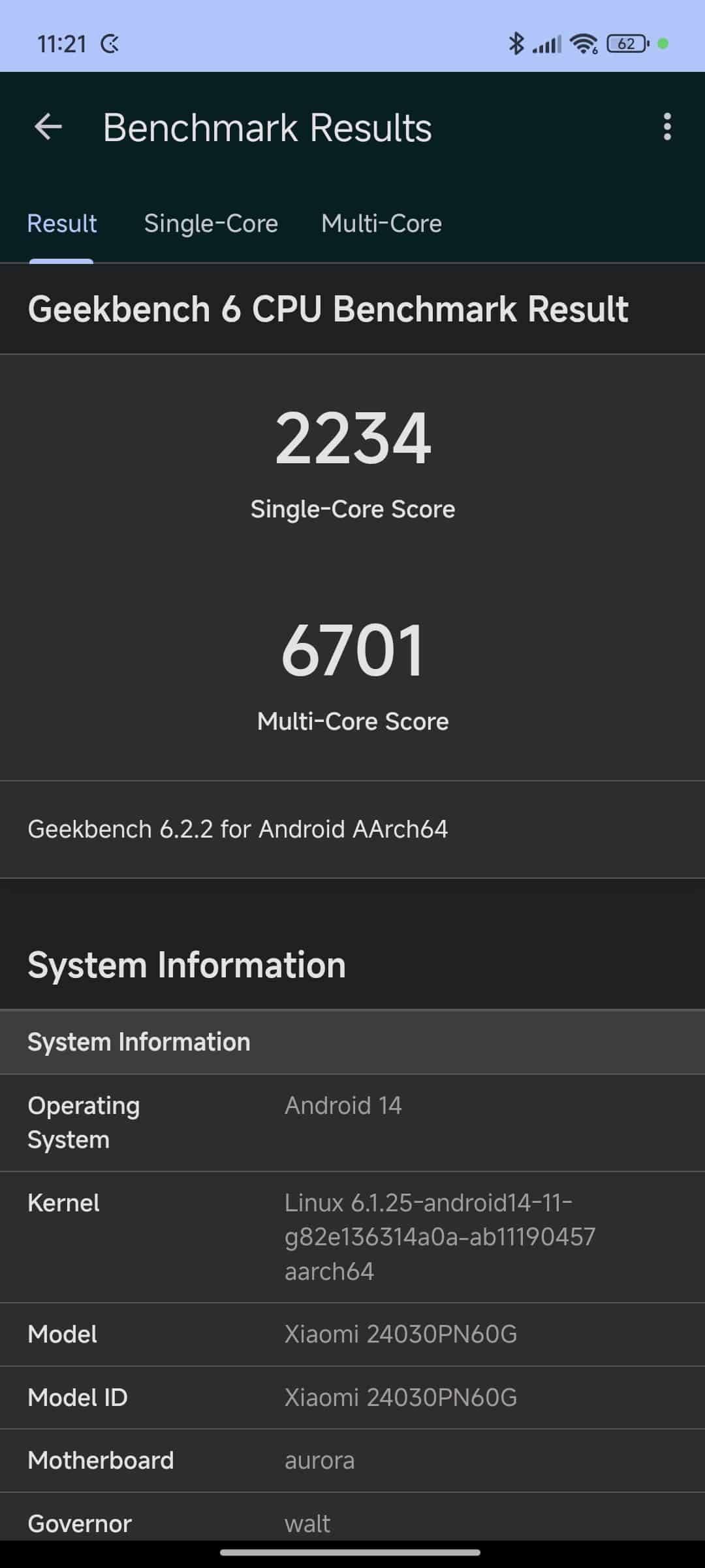 | GeekBench 6 (Single Core) | 2.234 Pkt. |